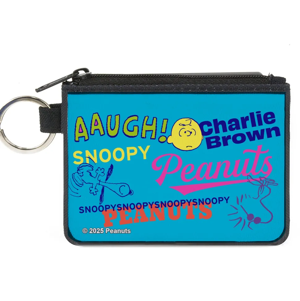 Canvas Zipper Wallet - MINI X-SMALL - PEANUTS Charlie Brown Snoopy and Woodstock Typography Collage Blue/Multi Color