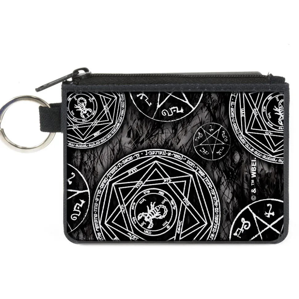 Canvas Zipper Wallet – MINI X-SMALL – Supernatural Devil's Trap Pentagrams Grays Black White