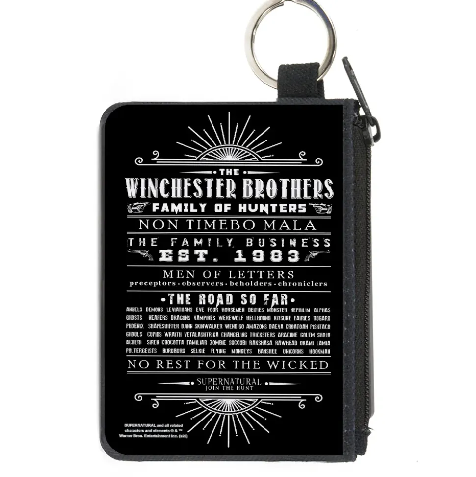 Canvas Zipper Wallet – MINI X-SMALL – Supernatural Quotes Scroll Black White