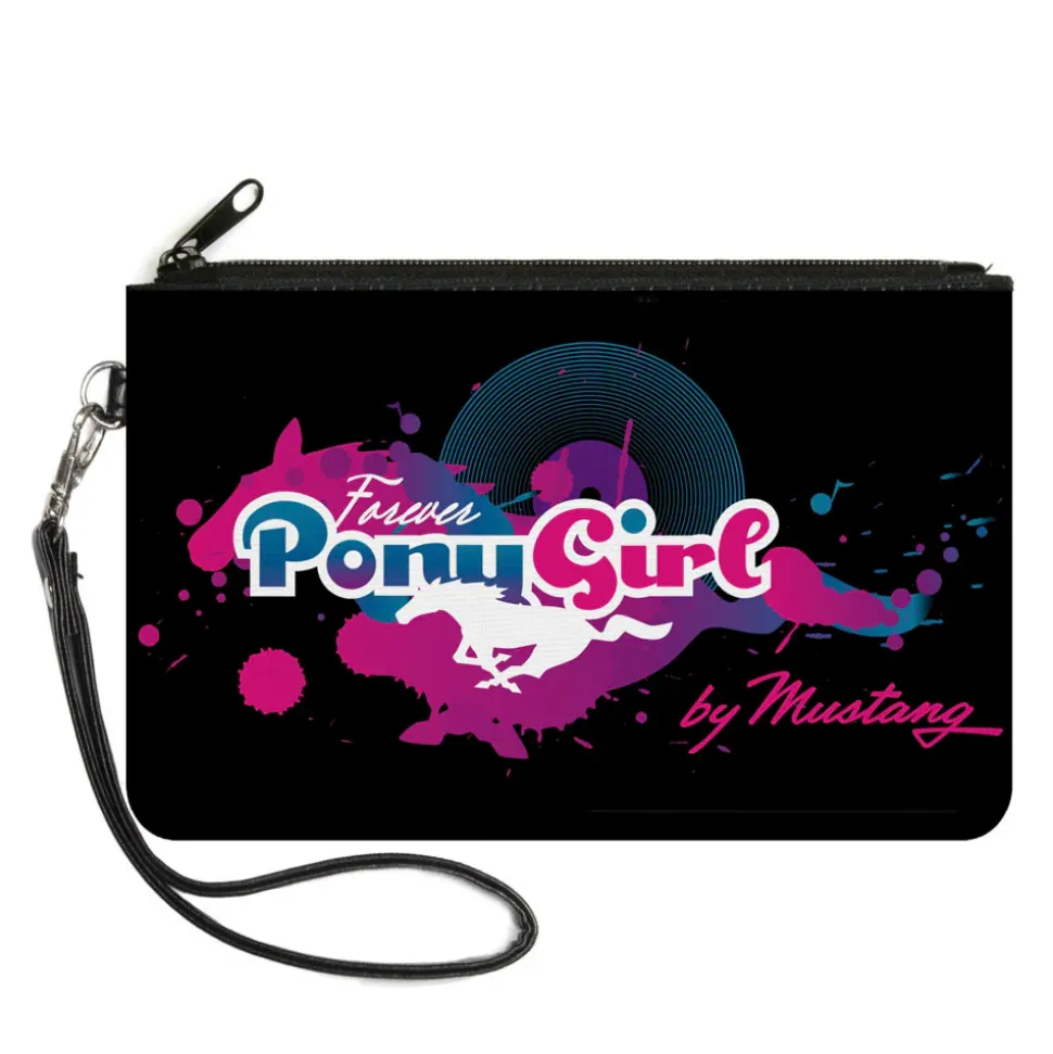 This is your classic “clutch” wallet, great for when you don’t want to carry around a bulky purse. It’s made from high-density woven polyester, and measures 6.5″x3.5″, with one pouch, a smooth zipper, and a detachable wrist strap for easy carrying. This product is Made in USA by Buckle-Down, Inc. and Officially Licensed by Ford.