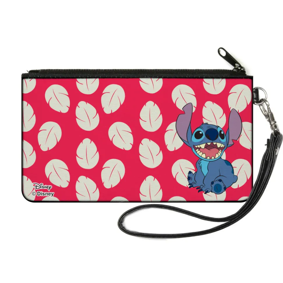 Canvas Zipper Wallet – SMALL – Lilo & Stitch Stitch Smiling Pose Lilo Dress Leaves Red Ivory