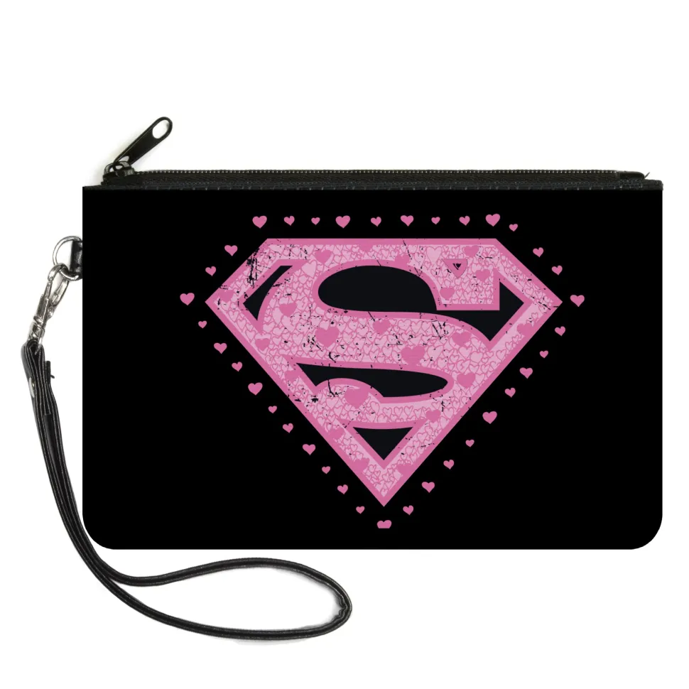 Canvas Zipper Wallet – SMALL – Superman Heart Shield Black/Pinks