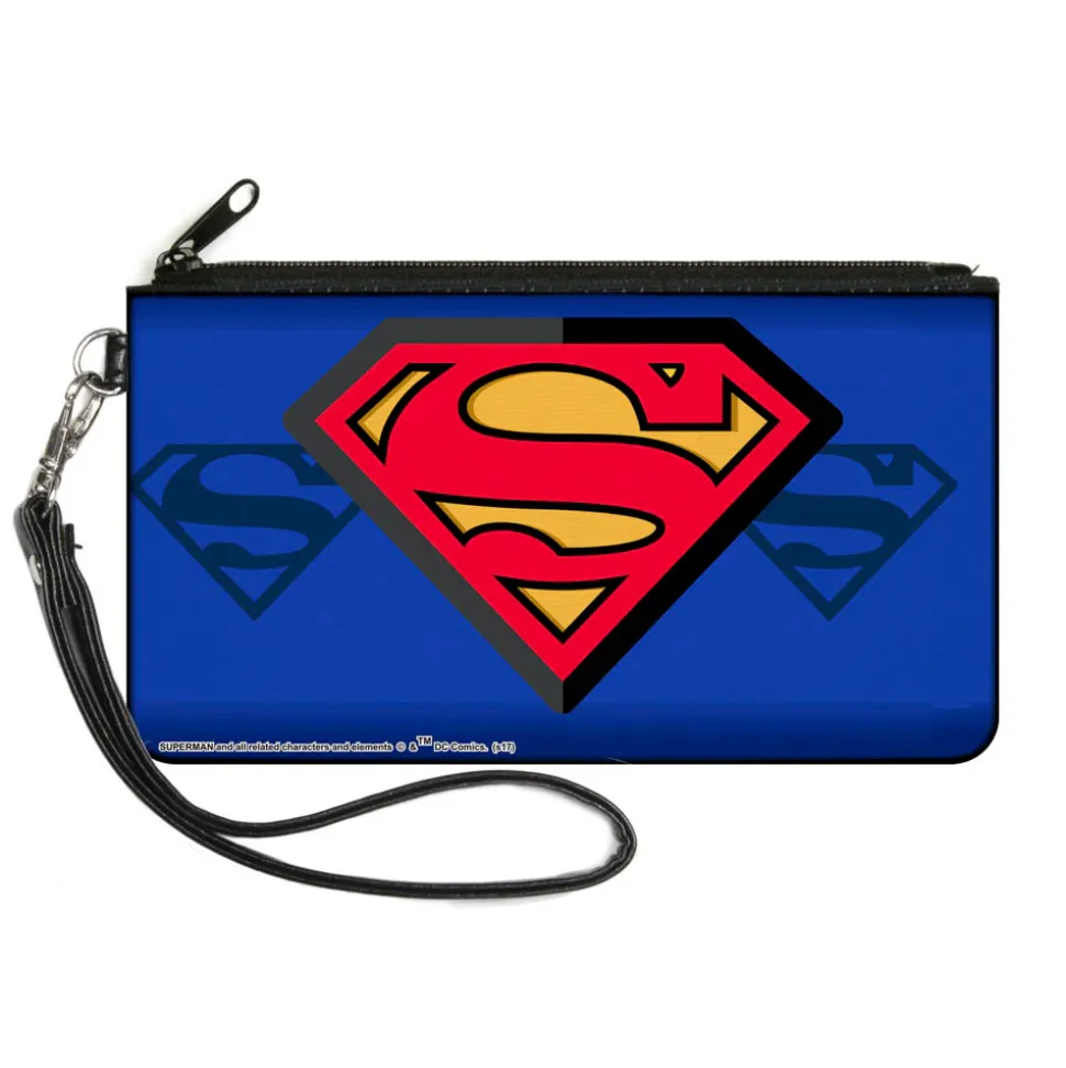 Canvas Zipper Wallet - SMALL - Superman Shield Centered Shield Stripe Blues