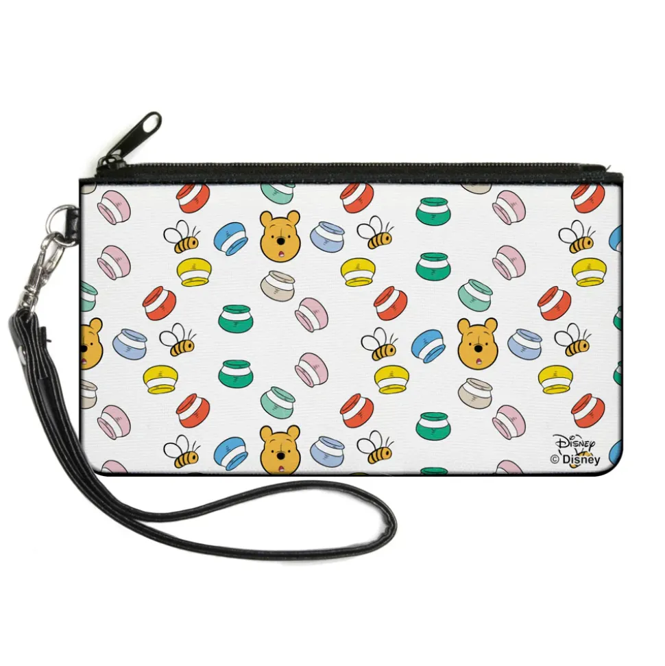Canvas Zipper Wallet – SMALL – Winnie the Pooh Face Bee Honey Pots Scattered White