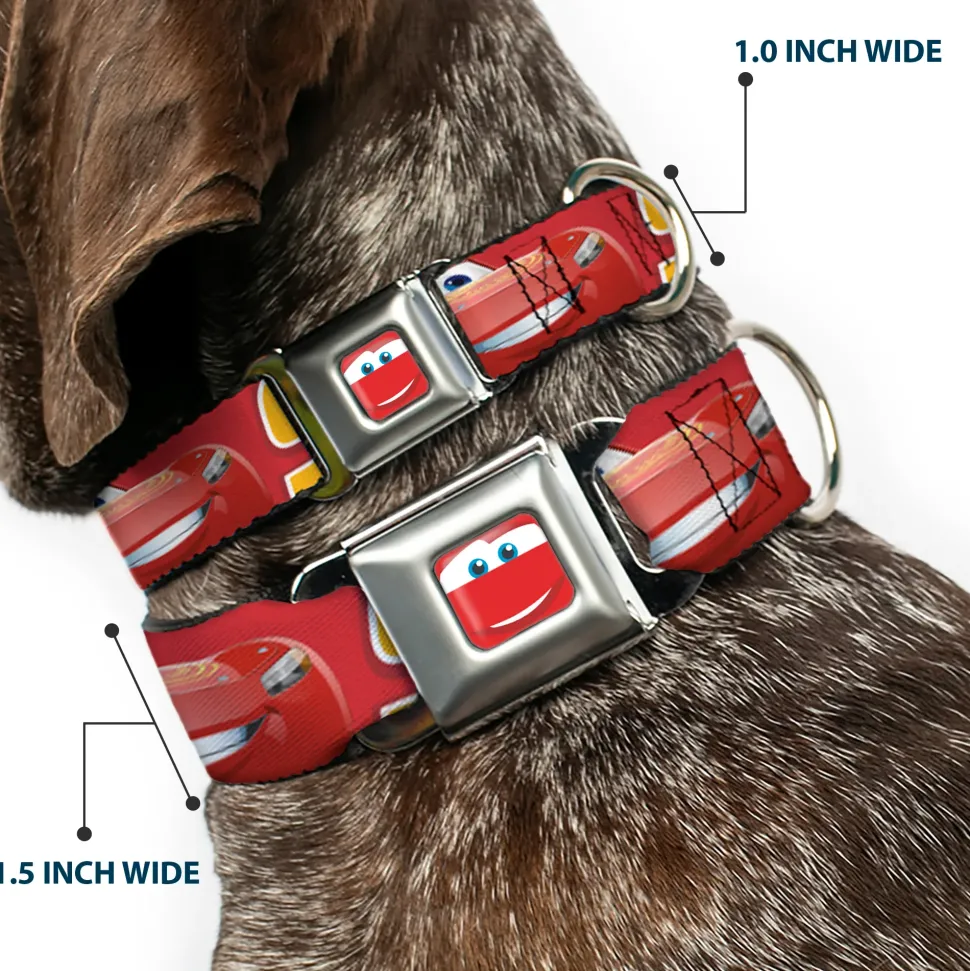 Cars Lightning McQueen Smiley Face CLOSE-UP Full Color Seatbelt Buckle Collar – Cars Lightning McQueen Smiling Pose/95 Reds/White/Orange