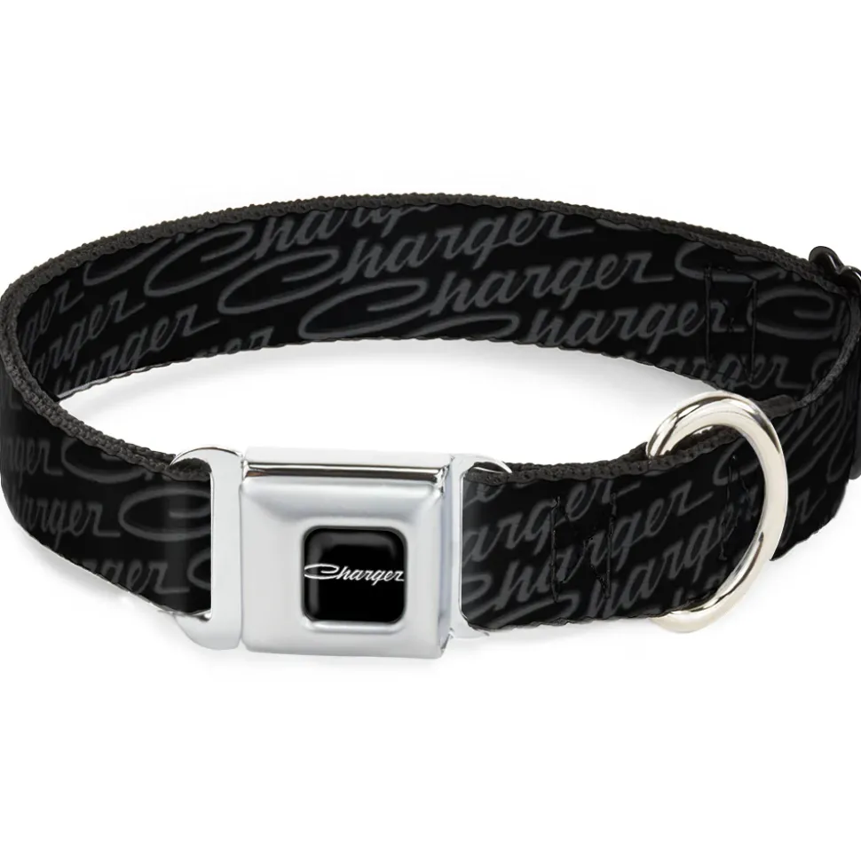 CHARGER Script Emblem Corner Full Color Black/Silver Fade/White Seatbelt Buckle Collar – CHARGER Script Emblem Repeat Black/Grays