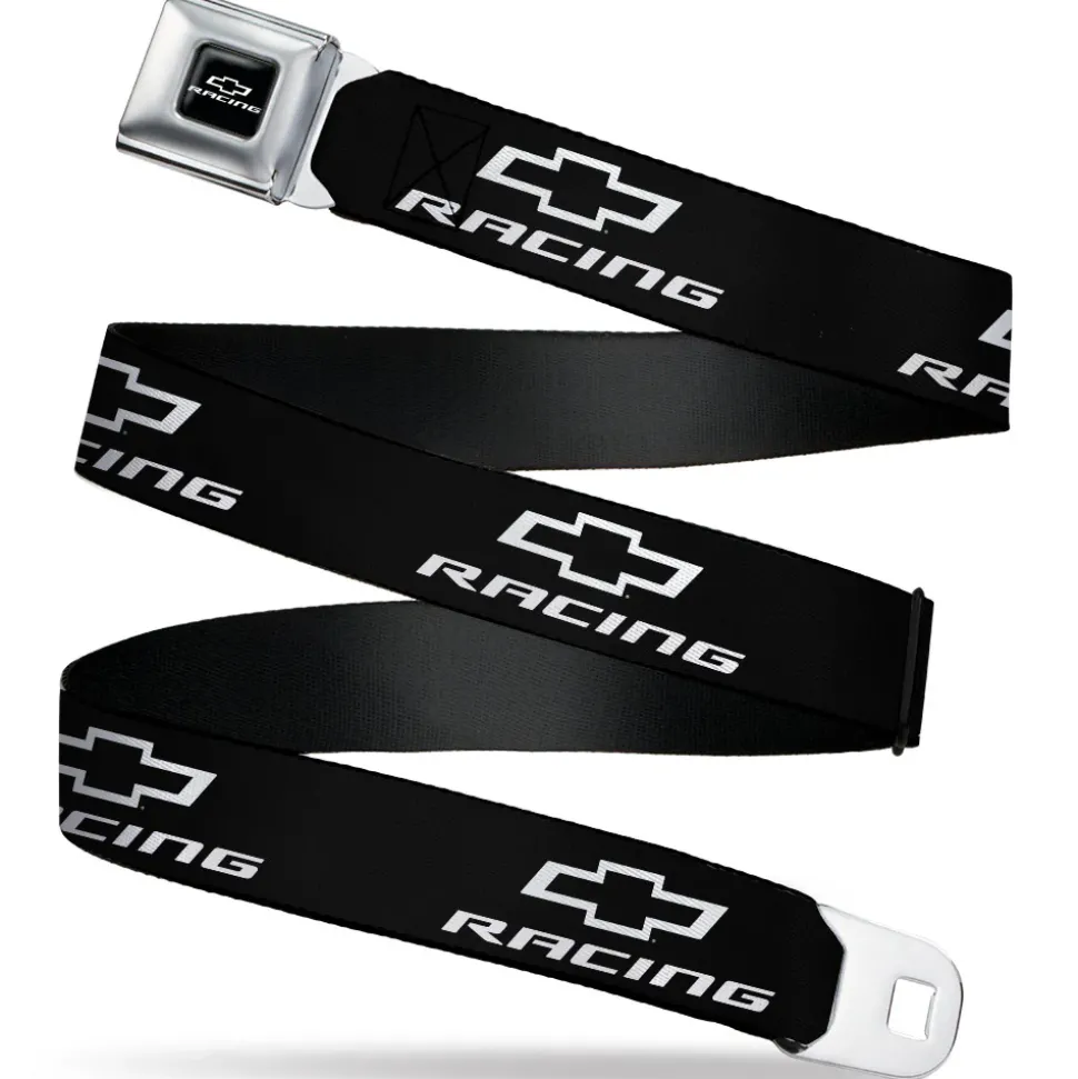 Chevy Bowtie RACING Logo Full Color Black/White Seatbelt Belt – Chevy Bowtie RACING Logo Black/White Webbing