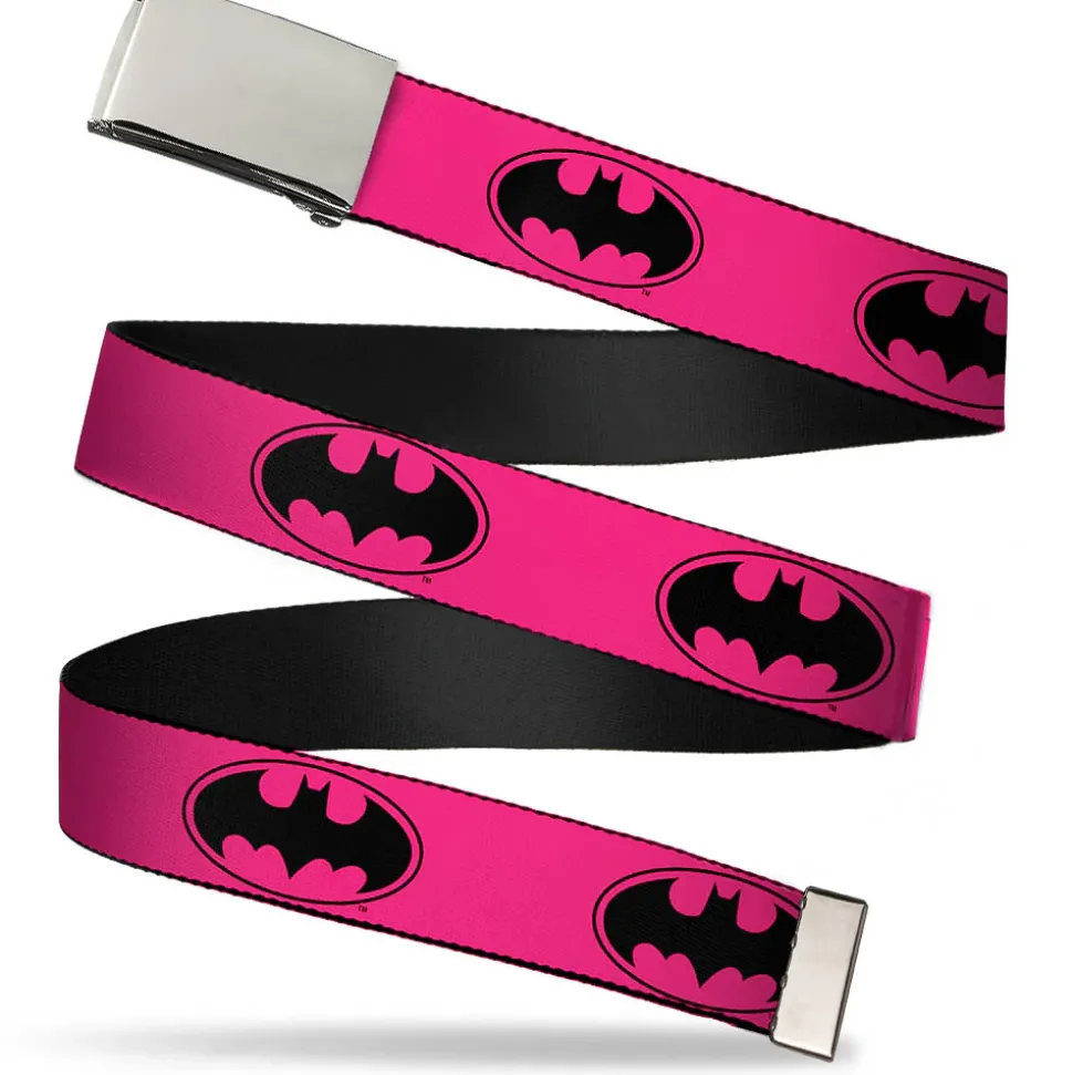 Chrome Buckle Web Belt – Bat Signal-3 Fuchsia/Black/Fuchsia Webbing