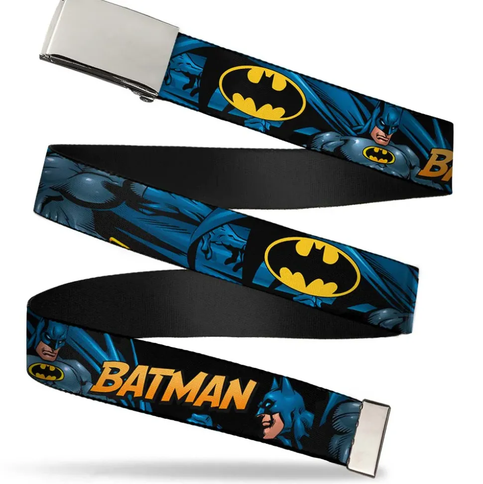 Chrome Buckle Web Belt – BATMAN Action Poses/Bat Signal Black Webbing