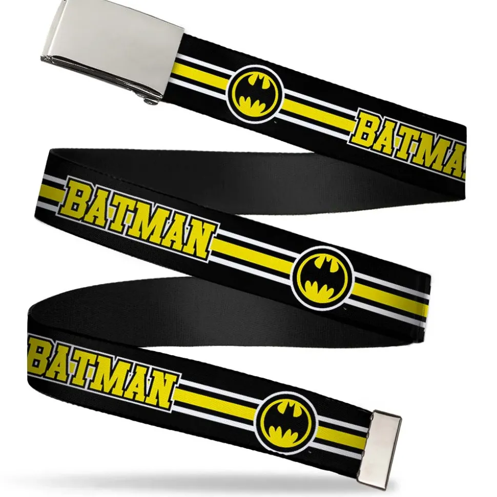 Chrome Buckle Web Belt – BATMAN/Bat Signal Triple Stripe Black/White/Yellow Webbing
