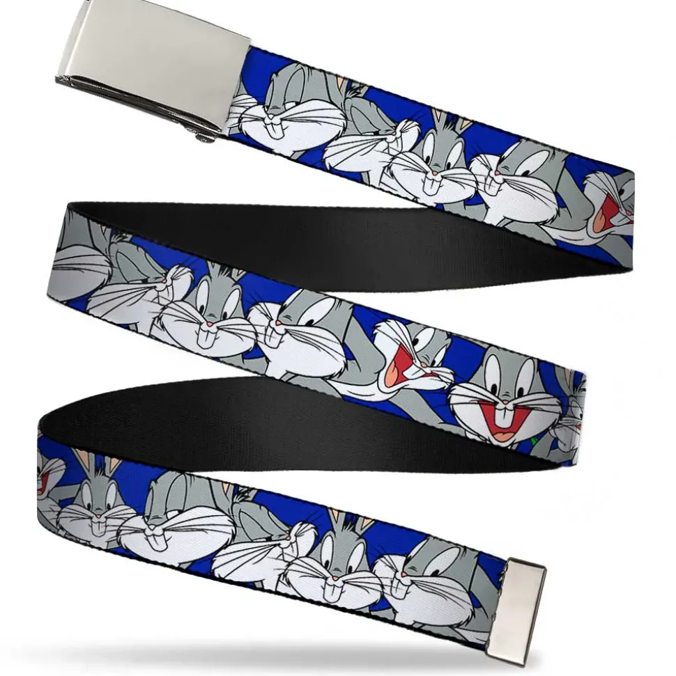 Chrome Buckle Web Belt – Bugs Bunny CLOSE-UP Poses Blue Webbing