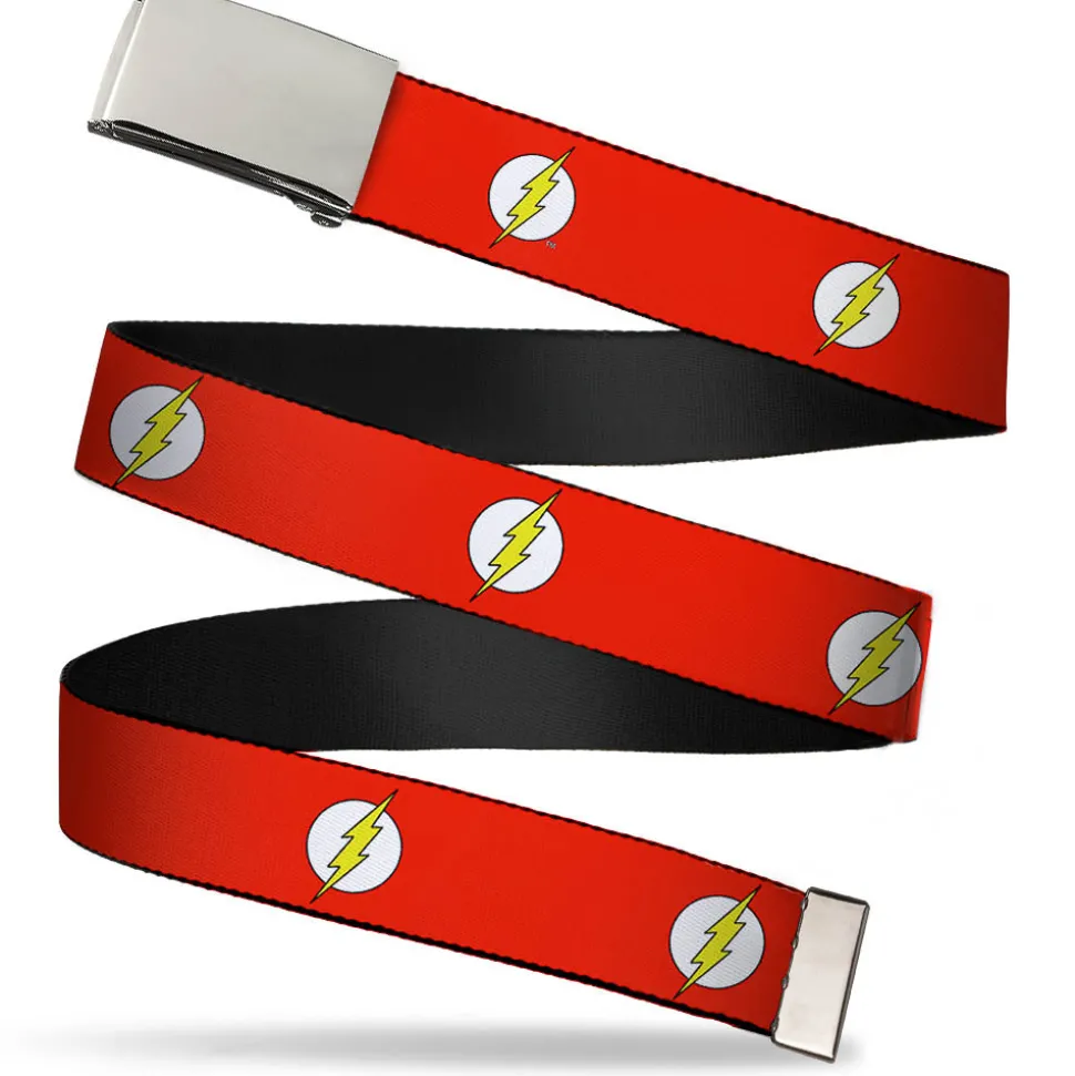 Chrome Buckle Web Belt – Flash Logo Red/White/Yellow Webbing