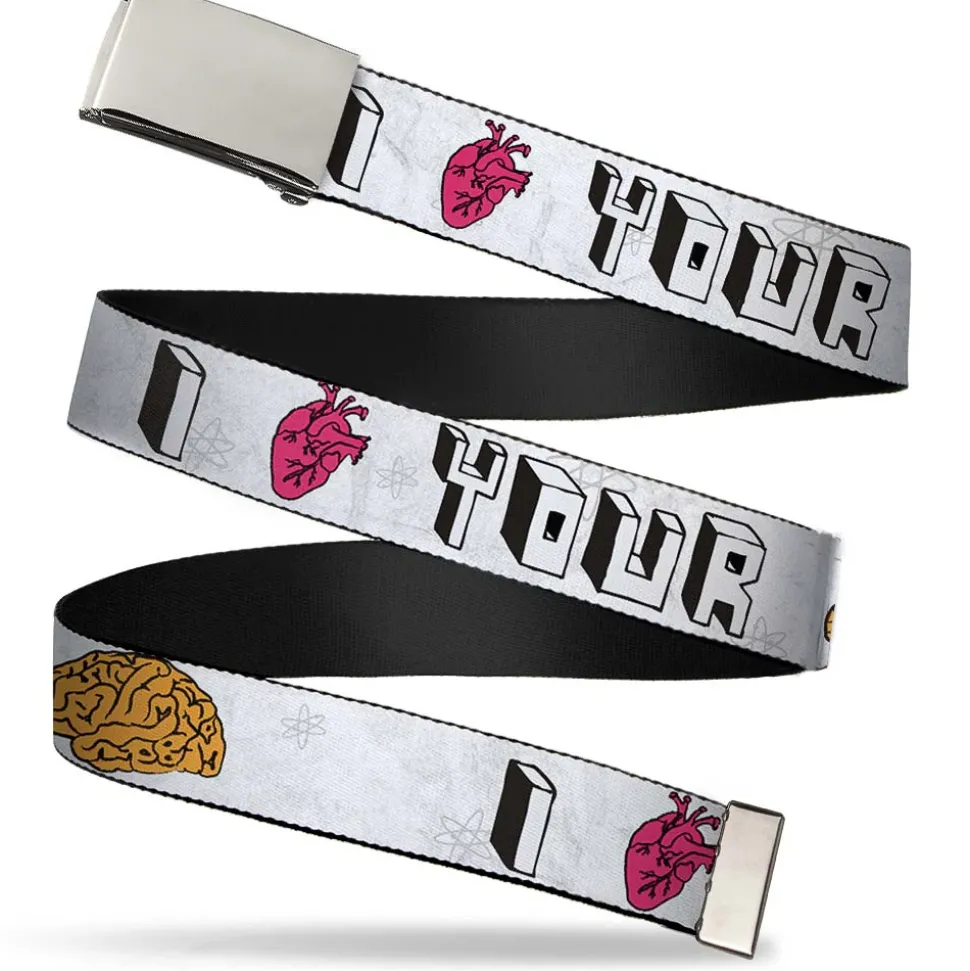 Chrome Buckle Web Belt – I "HEART" YOUR "BRAIN" Sketch Webbing