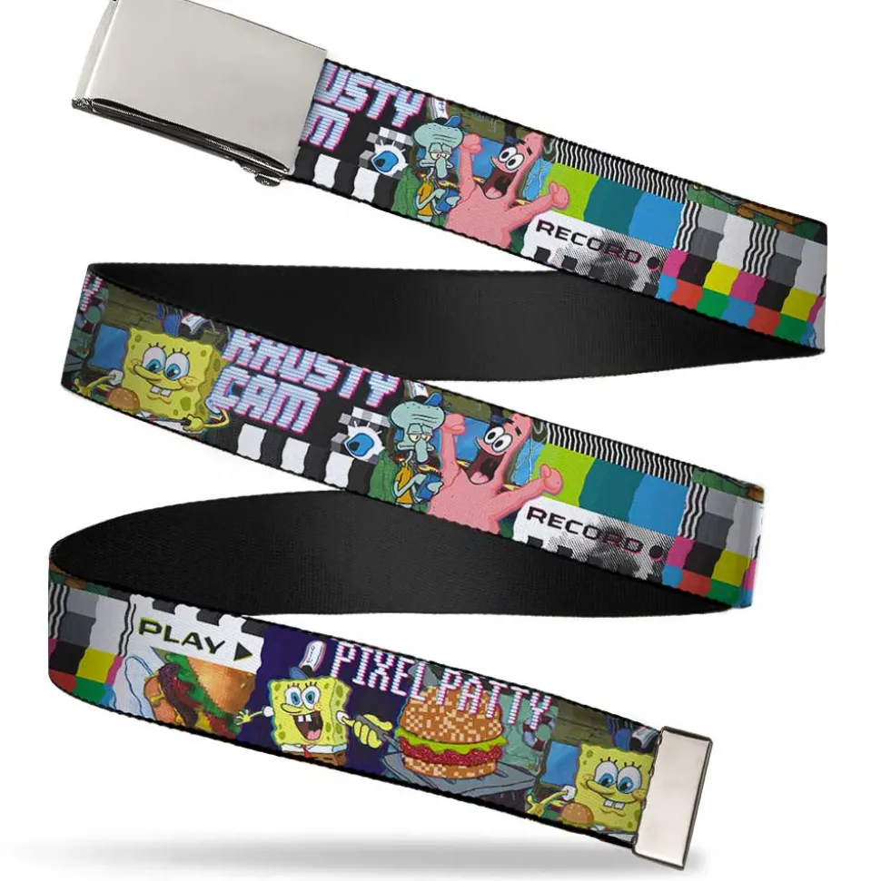 Chrome Buckle Web Belt – Krusty Krab Cam Scenes PIXEL PATTY-KRUSTY CAM Webbing