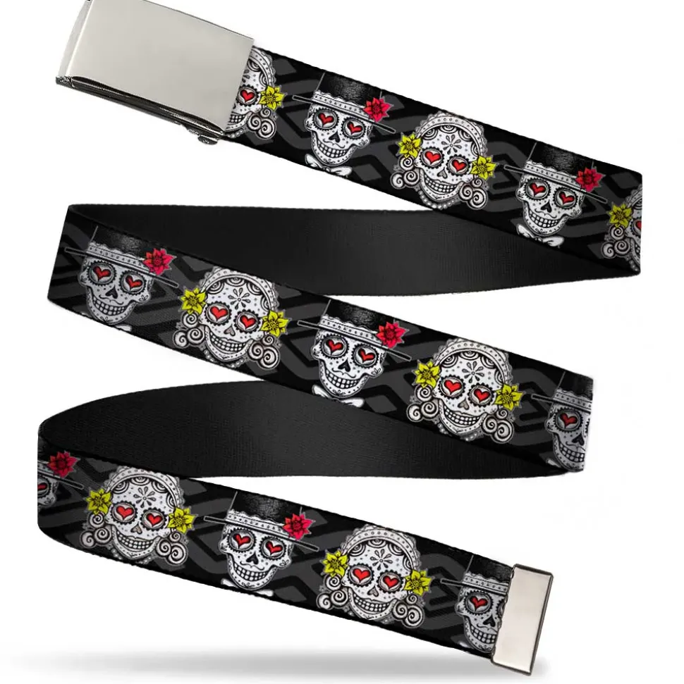 Chrome Buckle Web Belt – Los Novios Black/Gray/White/Multi Color Webbing