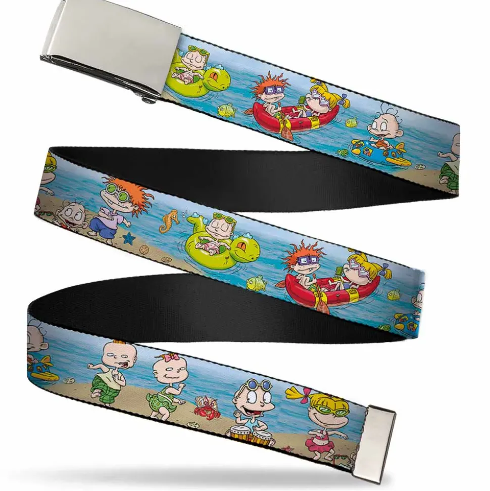 Chrome Buckle Web Belt – Rugrats Beach Play Scene Webbing