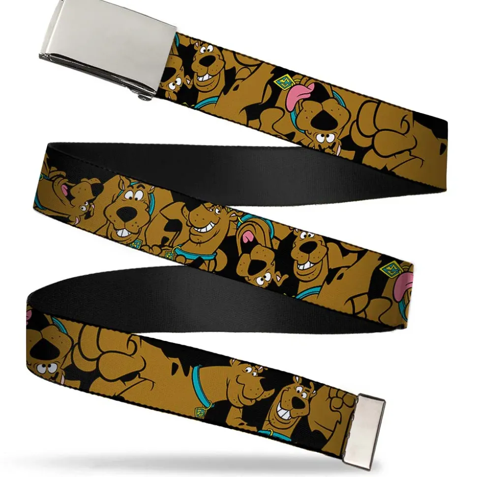 Chrome Buckle Web Belt – Scooby Doo Stacked CLOSE-UP Black Webbing