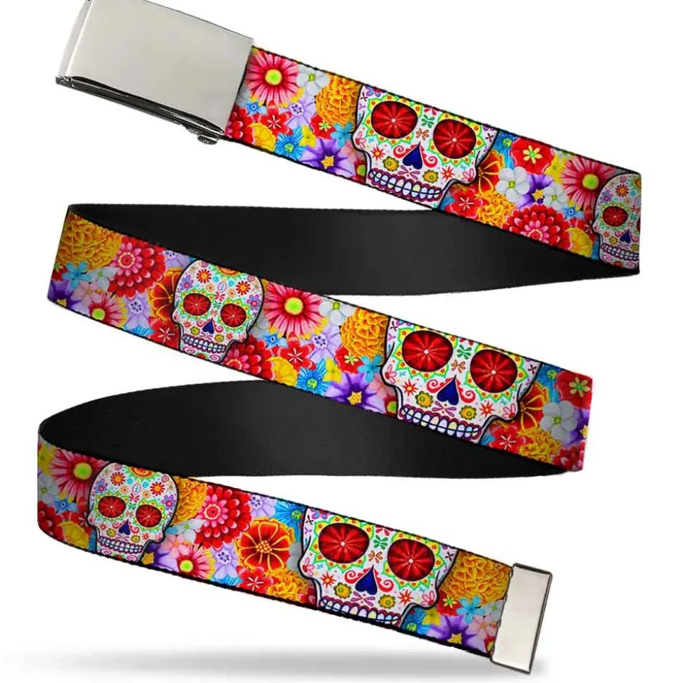 This unique web belt features a solid plain military-style clasp Buckle. It features beautiful artwork which is dyed into the fabric to ensure it looks great for years. This belt is available in 1.0″, 1.25″, and 1.5″ widths. 1.0″ wide belt is sized for children and adults with pants size 30 or lower. 1.25″ and 1.5″ wide belts are sized for adults, fitting up to pant size 42. This web belt is made from high-density nylon and steel. 1.5″ wide belt also has a bottle opener built into the back of the buckle! This product is Made in the USA by Buckle-Down Inc. and is officially licensed by Thaneeya McArdle.