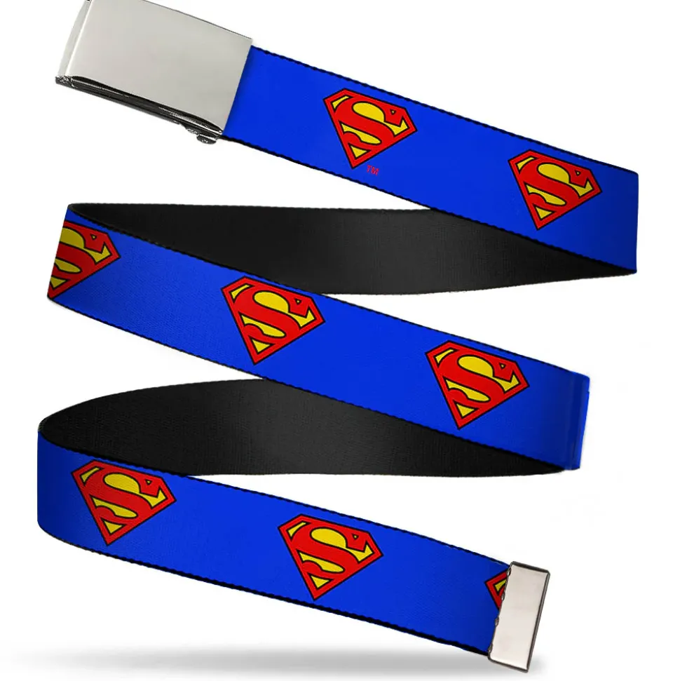 Chrome Buckle Web Belt – Superman Shield Blue Webbing