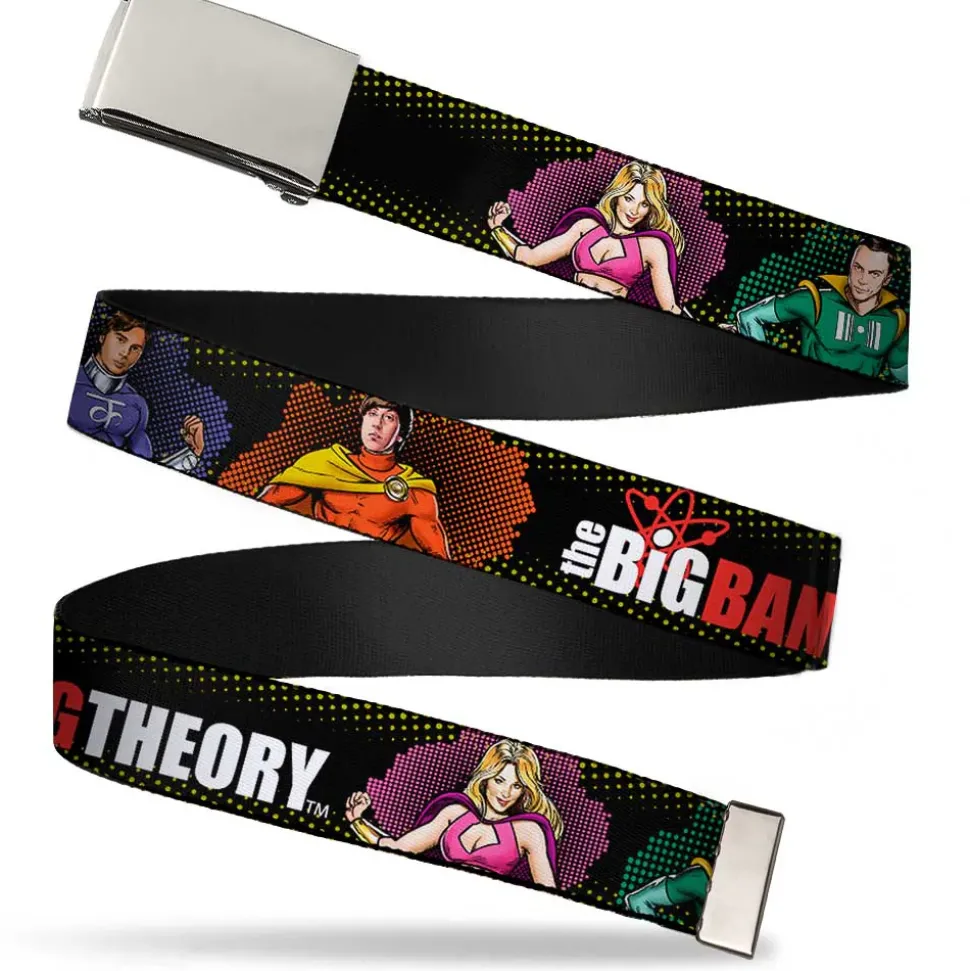 Chrome Buckle Web Belt – THE BIG BANG THEORY Superhero Character Poses Black Webbing