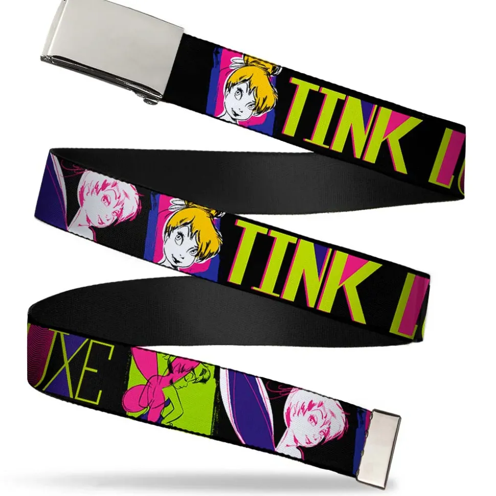 Chrome Buckle Web Belt – TINK LUXE Sketch Black/Multi Neon Webbing
