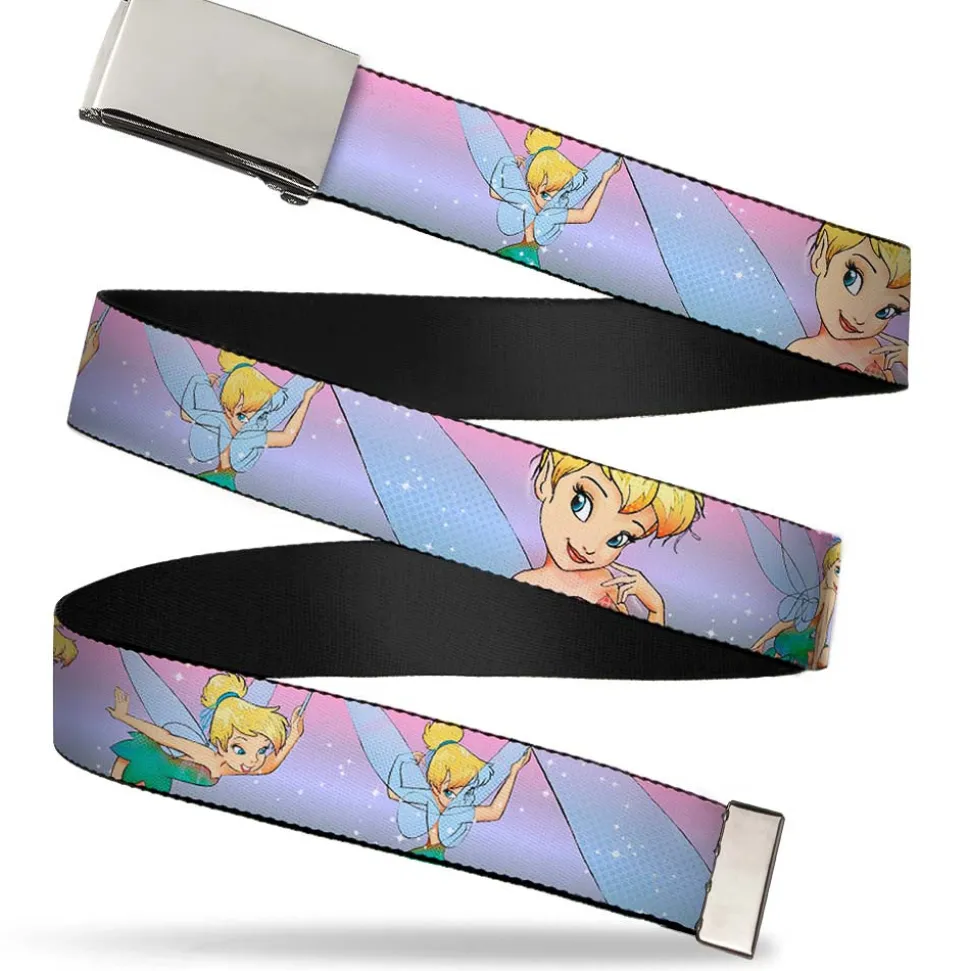 Chrome Buckle Web Belt – Tinker Bell Poses Purple/Pink Fade Webbing