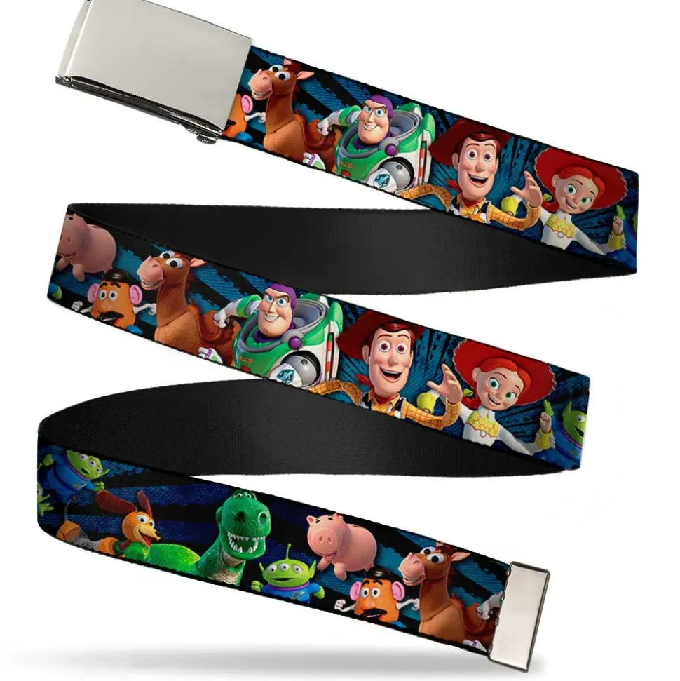 Chrome Buckle Web Belt – Toy Story Characters Running Denim Rays Webbing