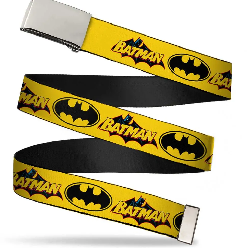 Chrome Buckle Web Belt – Vintage Batman Logo & Bat Signal-3 Yellow Webbing