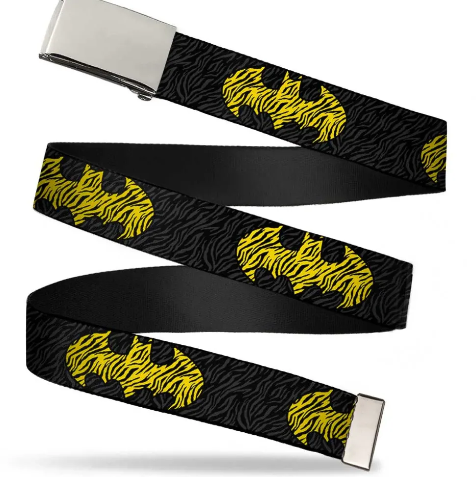 Chrome Buckle Web Belt – Zebra Bat Signal Black/Gray/Yellow/Black Webbing