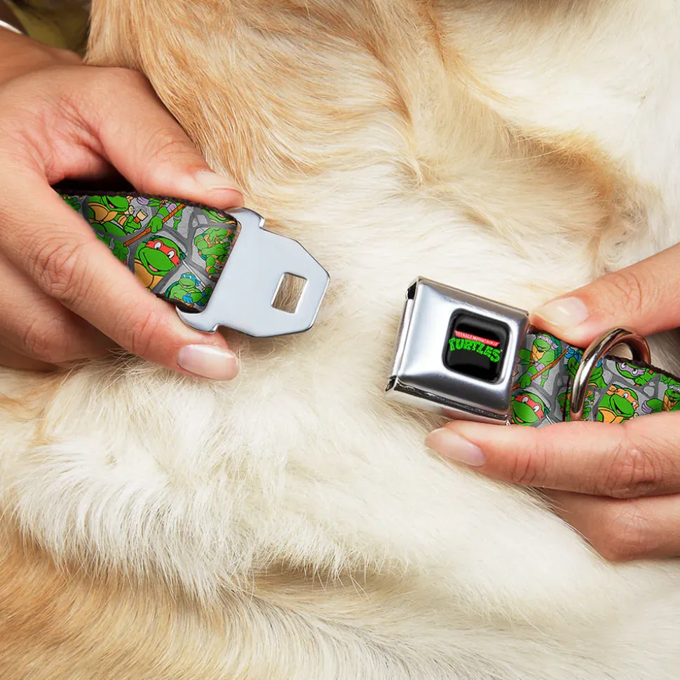 Classic TEENAGE MUTANT NINJA TURTLES Logo Seatbelt Buckle Collar – Classic Teenage Mutant Ninja Turtles Expression & Pose Turtle Shell Collage Lavender
