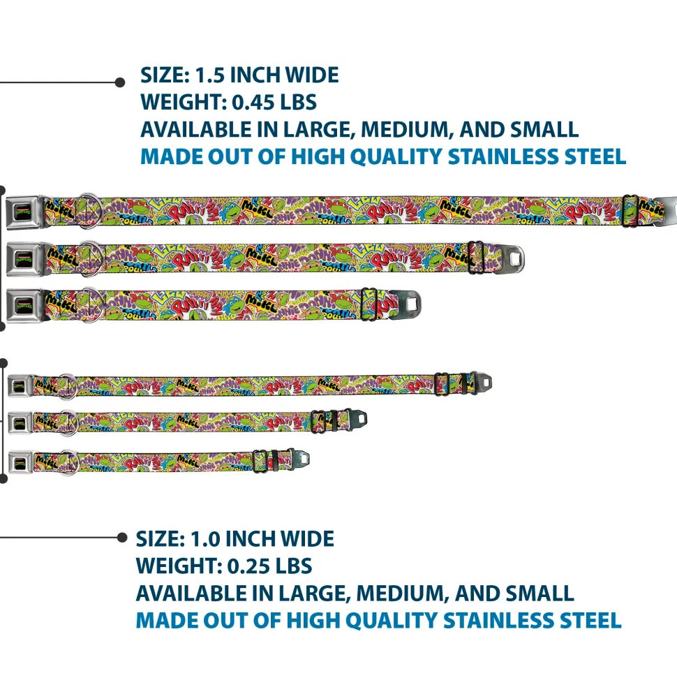 Your dog will be the talk of the town when people notice they’re wearing this awesome SeatBelt Dog Collar! Made from high-density polyester and durable steel components, this collar is built to last. It features beautiful vibrant artwork. The buckle is a miniature authentic SeatBelt Buckle, so you press the center button to release the clasp. This product is assembled in the USA by Buckle-Down Inc. and officially licensed by Nickelodeon.