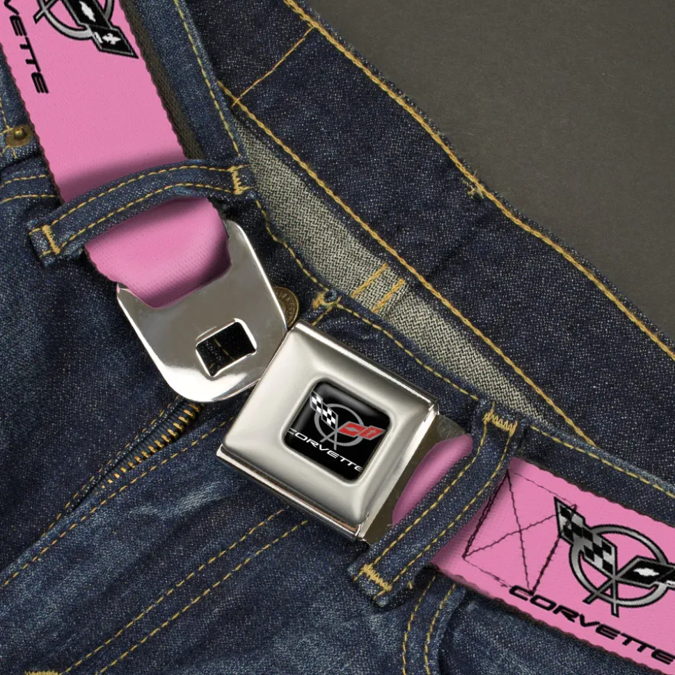 Corvette Seatbelt Belt – CORVETTE C5 Logo Repeat Pink/Black/Silvers Webbing