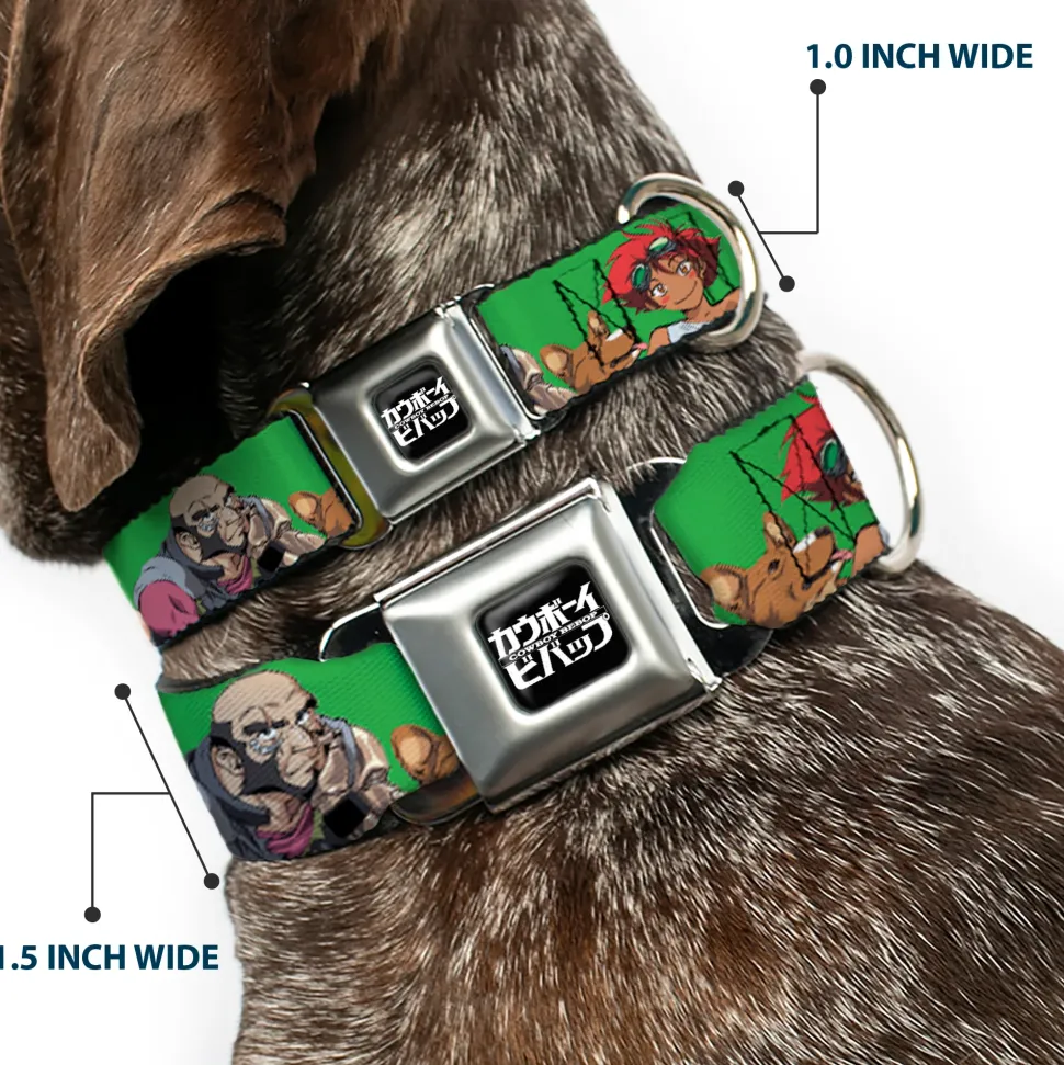 COWBOY BEBOP Title Logo Full Color Black/White Seatbelt Buckle Collar – COWBOY BEBOP Crew Group Pose and Title Logo Green/Black