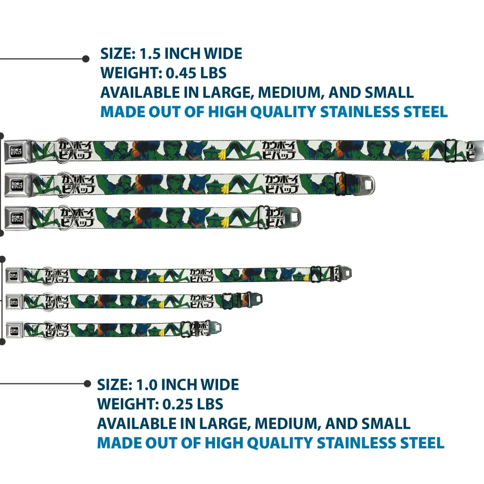 COWBOY BEBOP Title Logo Full Color Black/White Seatbelt Buckle Collar – COWBOY BEBOP Crew Group Pose and Title Logo White/Black/Greens