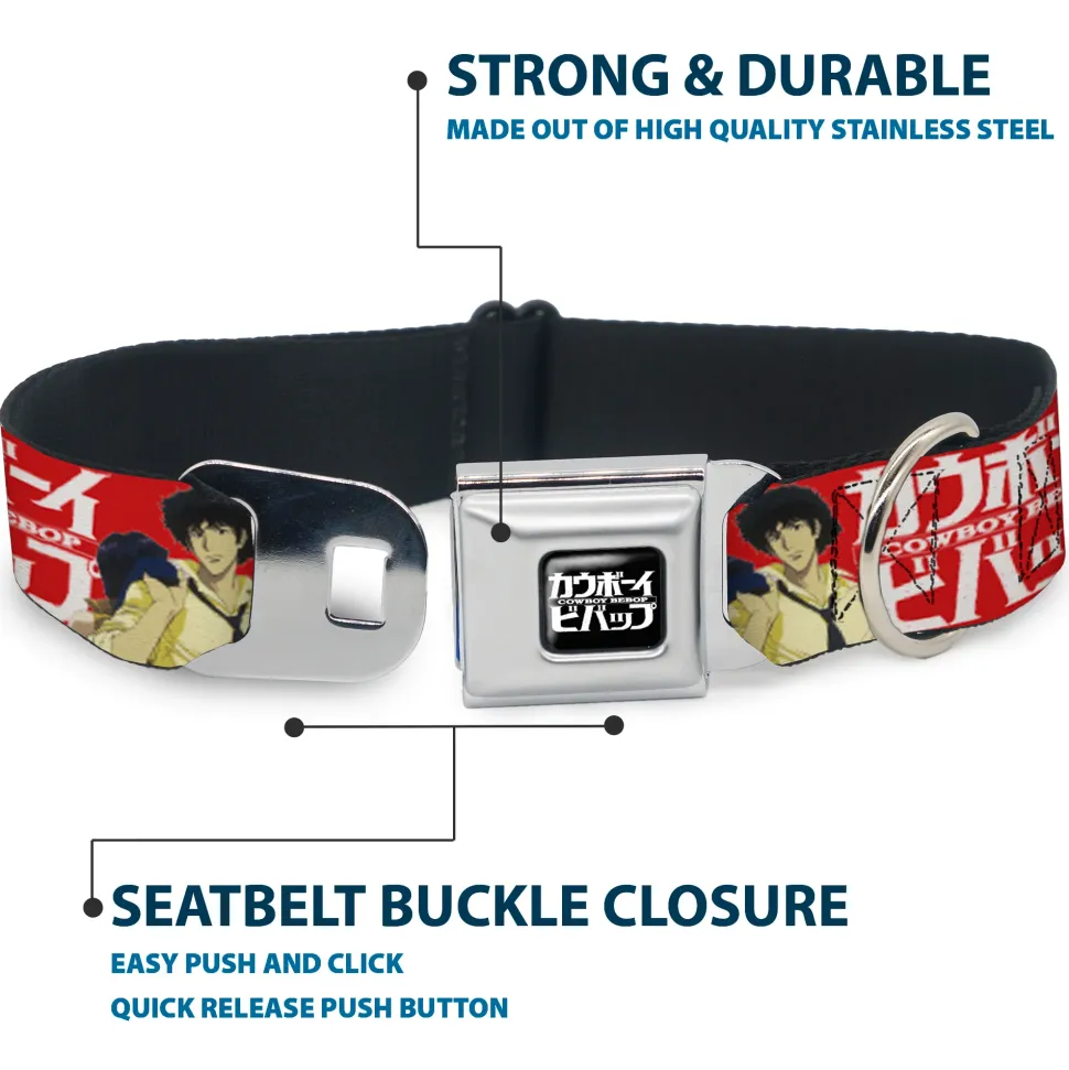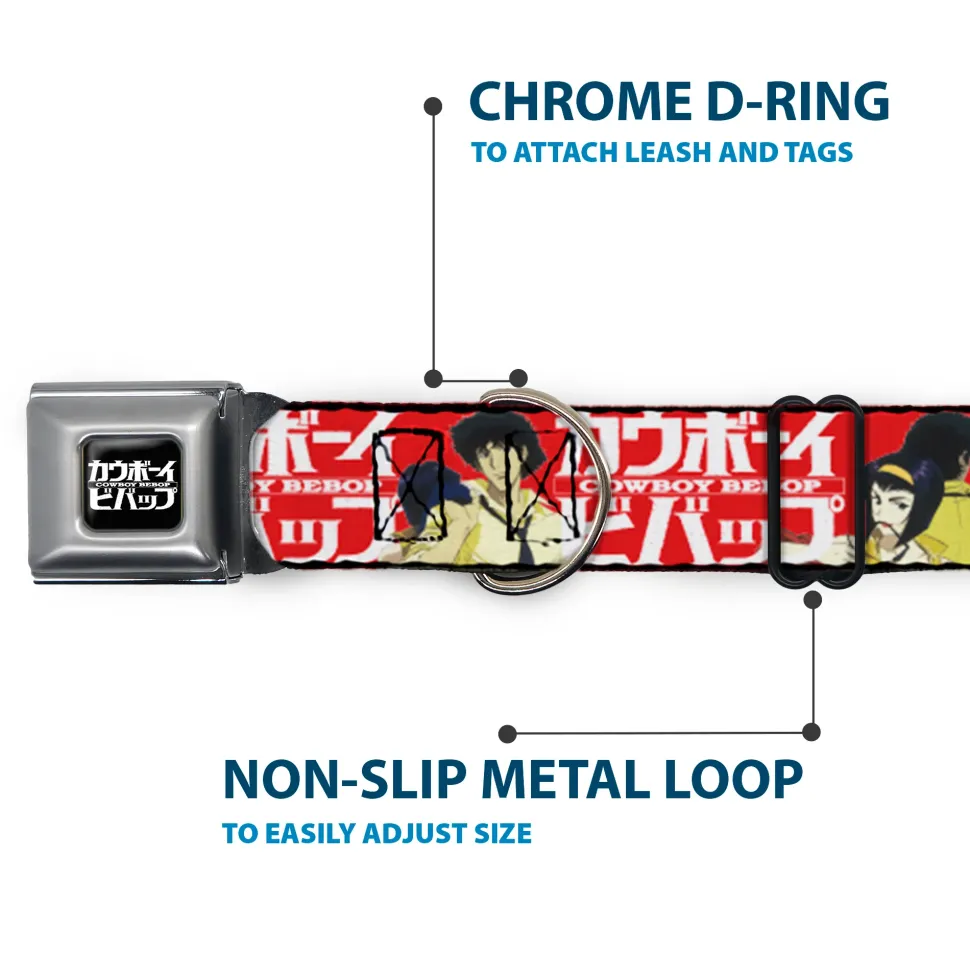 COWBOY BEBOP Title Logo Full Color Black/White Seatbelt Buckle Collar – COWBOY BEBOP Spike and Faye Back to Back Pose and Title Logo Red/White