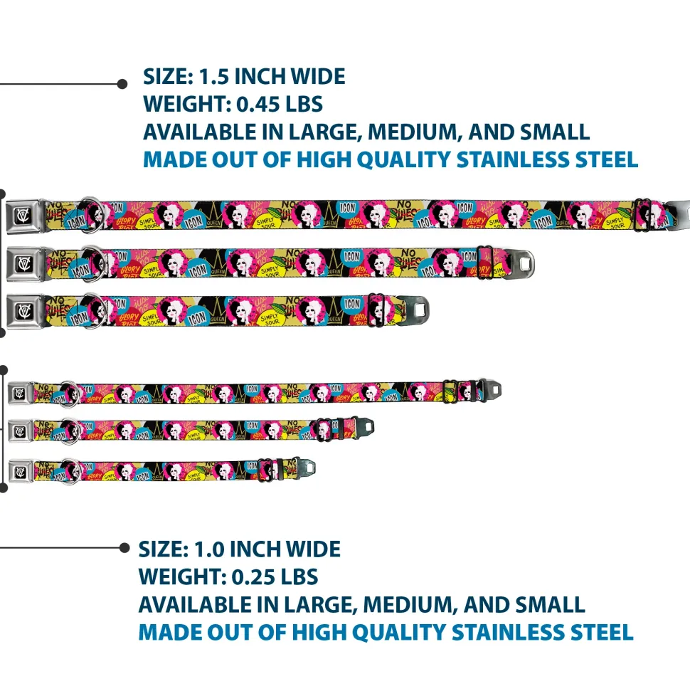Your dog will be the talk of the town when people notice they’re wearing this awesome SeatBelt Dog Collar! Made from high-density polyester and durable steel components, this collar is built to last. It features beautiful vibrant artwork. The buckle is a miniature authentic SeatBelt Buckle, so you press the center button to release the clasp. This product is Made in USA by Buckle-Down Inc. and officially licensed by Disney.