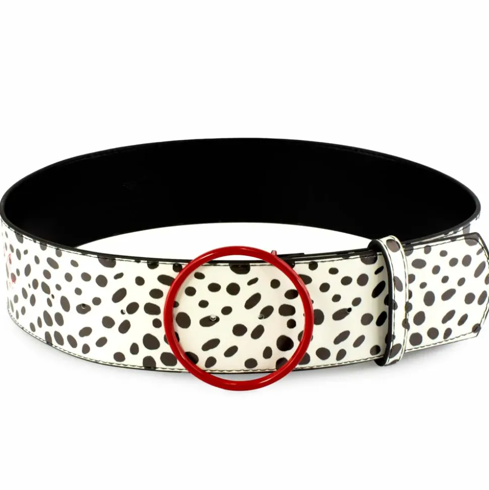 - This awesome Disney logo belt is made from premium vegan leather and features Cruella De Vils Dalamatian Spots.