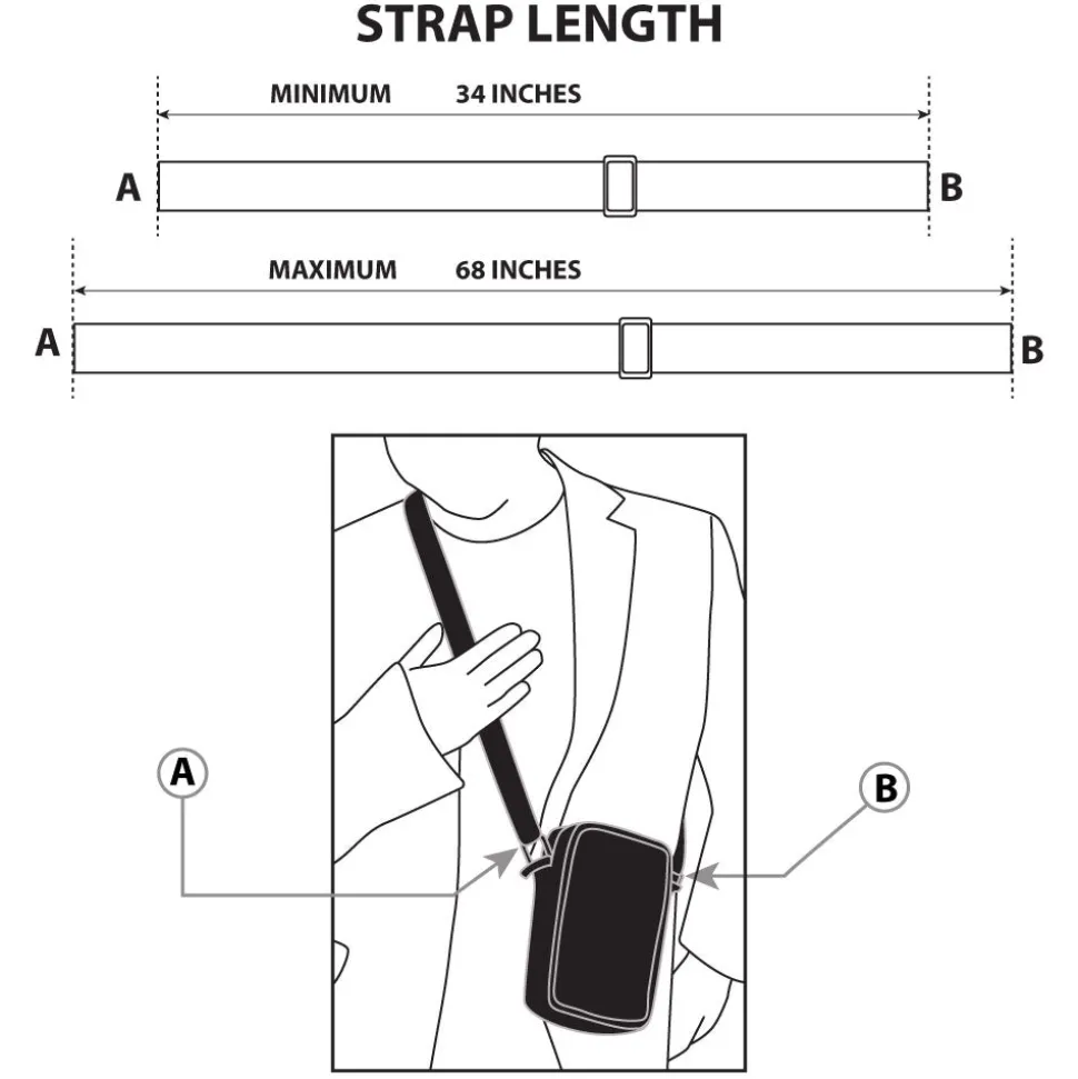 - Stylish and sleek, this cross body bag is made from premium vegan leather and features a polyester strap that is fully adjustable from 34 to 68 inches.