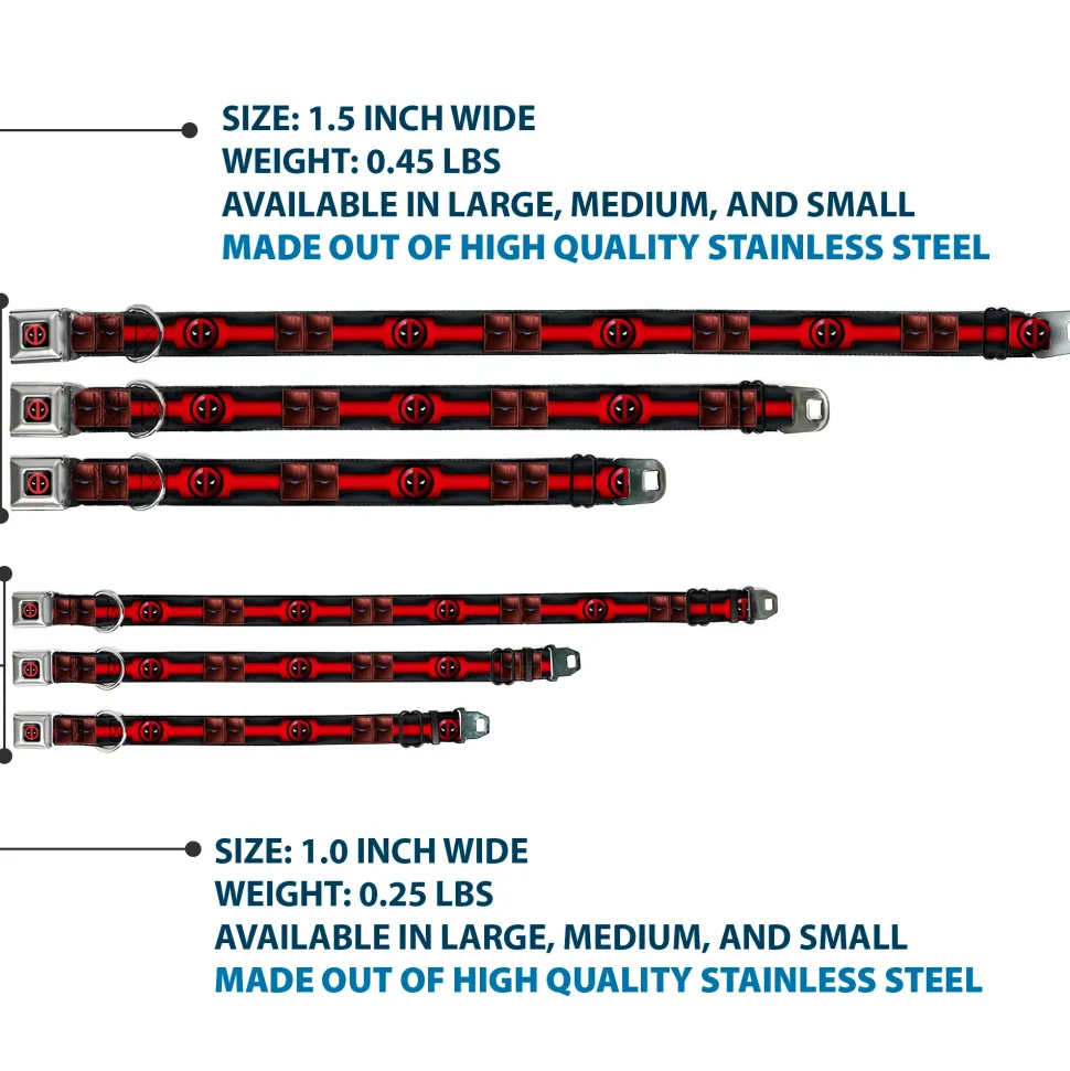 Deadpool Logo CLOSE-UP Full Color Black/Red/White Seatbelt Buckle Collar – Deadpool Utility Belt Logo/Pockets Black/Reds/Browns