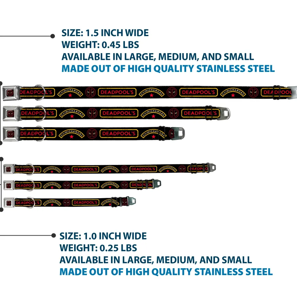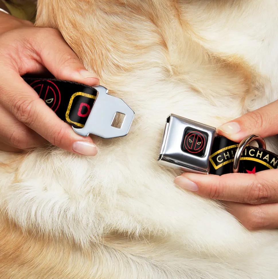 Deadpool Logo Outline Full Color Black/Red/White Seatbelt Buckle Collar – DEADPOOL'S CHIMICHANGAS and Logo Black/Gold/Red