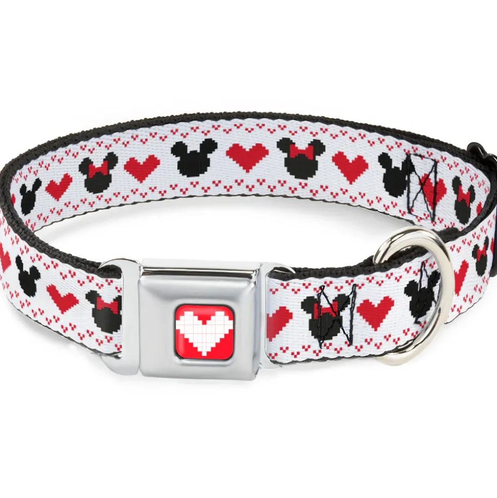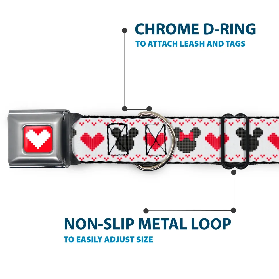 Disney Holiday Mickey and Minnie Mouse Heart Sweater Stitch Full Color Reds Seatbelt Buckle Collar – Disney Holiday Mickey and Minnie Mouse Heart Sweater Stitch White/Red/Black