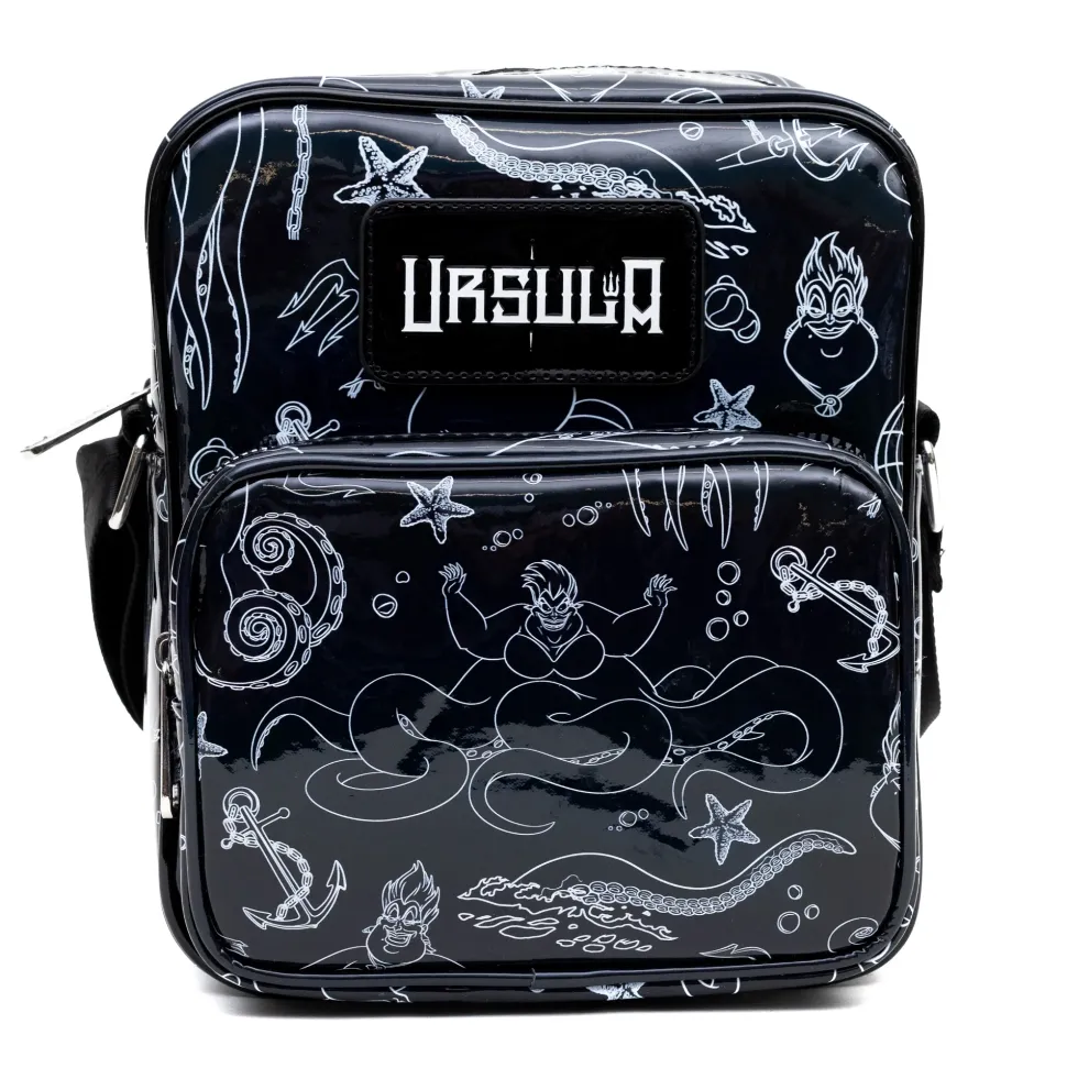 Dive into the depths of Disney magic with our captivating Disney Vegan Leather Cross Body Backpack featuring The Little Mermaid Villain Ursula Poses in mesmerizing holographic black and white design. This stunning backpack is not only a fashion statement but also a practical accessory designed to make every adventure a magical one. Crafted from premium vegan leather, this cross body backpack boasts durability and eco-conscious style. The holographic black and white design featuring Ursula Poses adds a bold and striking flair, making it a standout accessory for Disney enthusiasts and fashion-forward individuals alike.