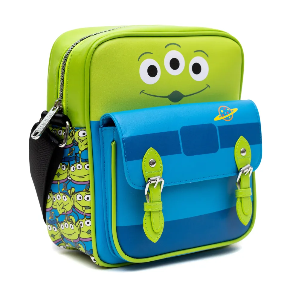 Embrace the whimsical charm of Toy Story with the Disney Vegan Leather Crossbody Bag. Crafted with meticulous attention to detail, this stylish accessory features an eye-catching Alien bodice and stacked alien design in vibrant green and blue hues. Made from high-quality vegan leather, this bag combines fashion with an eco-conscious mindset, making it perfect for those who value both style and sustainability. The spacious front pocket offers convenient storage for your essentials, ensuring that your phone, keys, and wallet are always within easy reach. The adjustable crossbody strap provides a comfortable fit for all-day wear, while the durable construction ensures that this bag will withstand the test of time. Whether you’re heading to the park, running errands, or meeting friends, this bag is the perfect companion for any occasion.