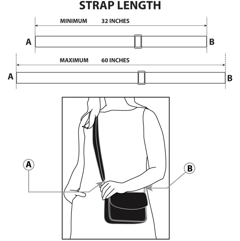 - The vegan leather strap is fully adjustable from 32 to 60 inches.