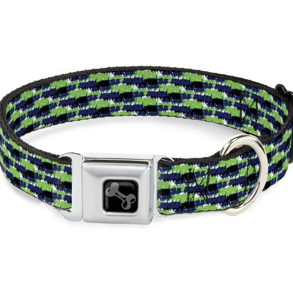 Dog Bone Black/Silver Seatbelt Buckle Collar – Abstract Scribble Black/Blue/Neon Green