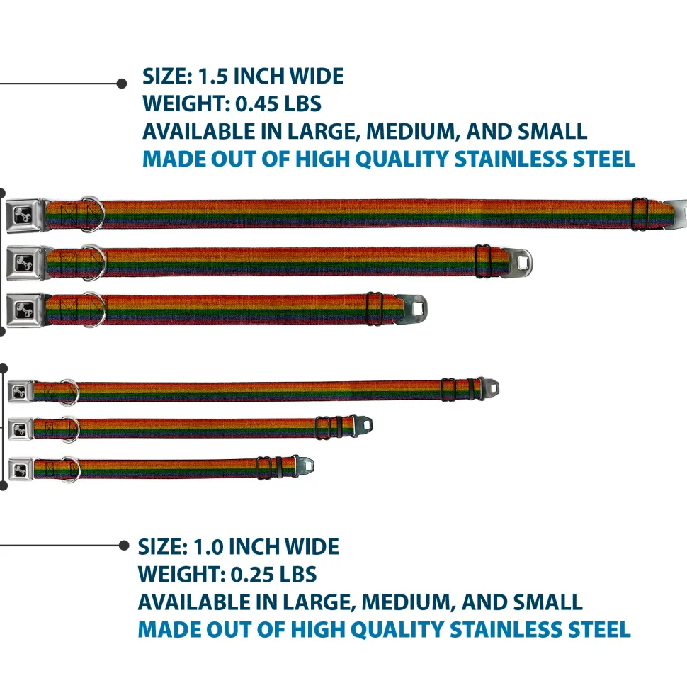 Dog Bone Black/Silver Seatbelt Buckle Collar – Burlap Texture Rainbow