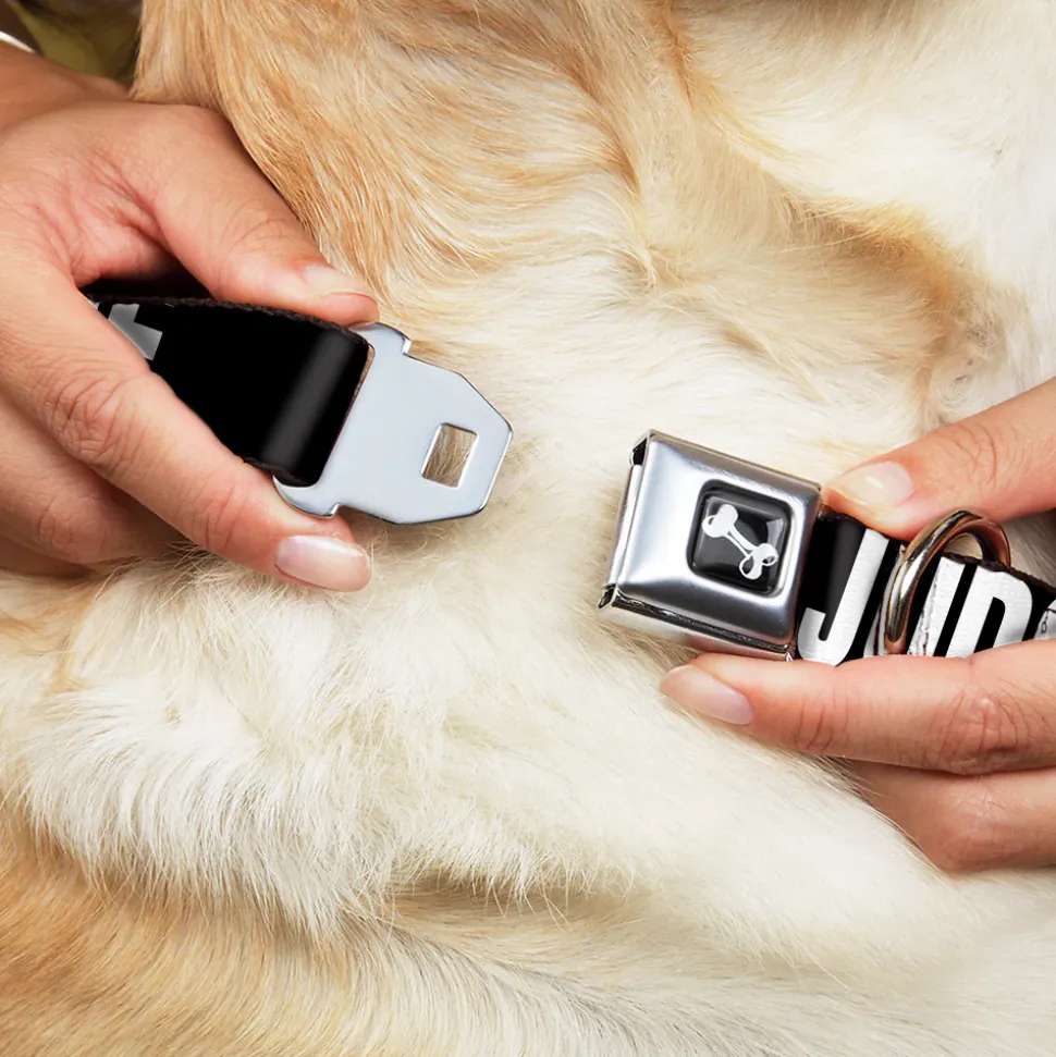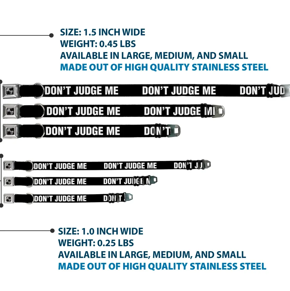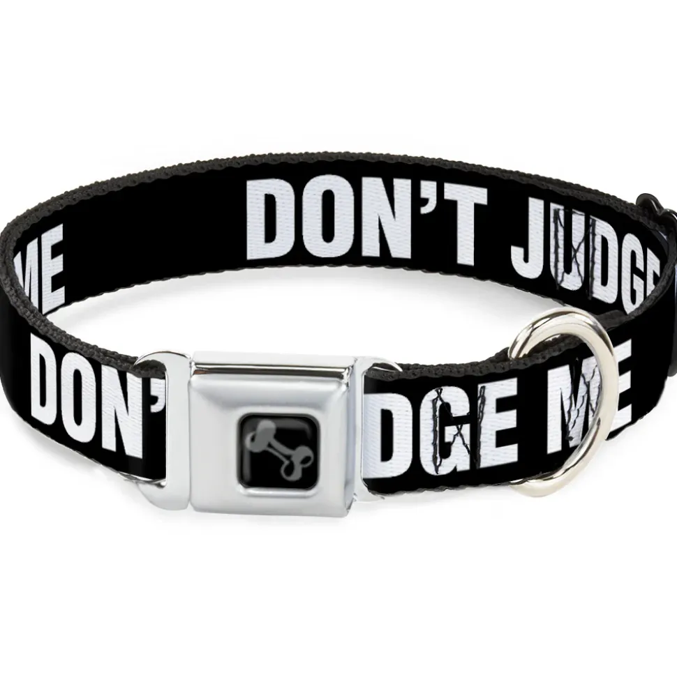 Dog Bone Black/Silver Seatbelt Buckle Collar – DON'T JUDGE ME Black/White