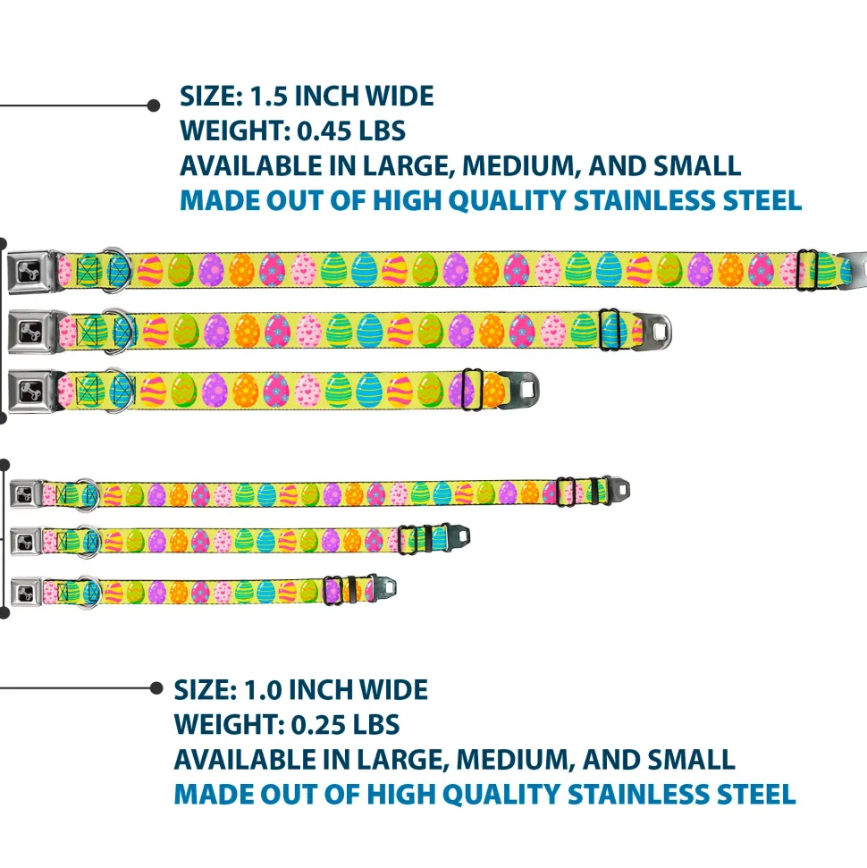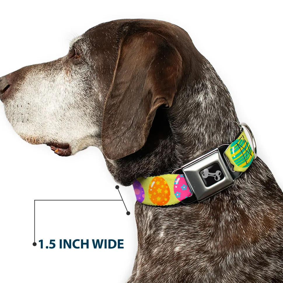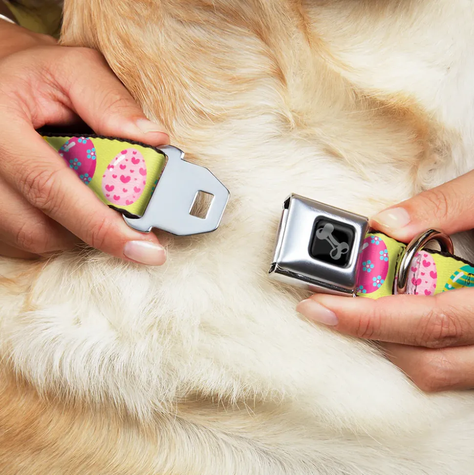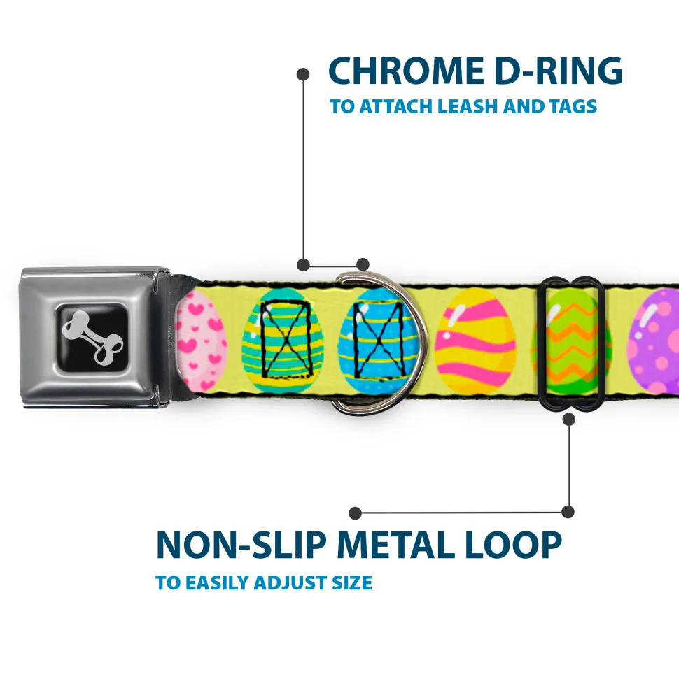 Dog Bone Black/Silver Seatbelt Buckle Collar – Easter Eggs Decorated Eggs Yellow/Multi Color