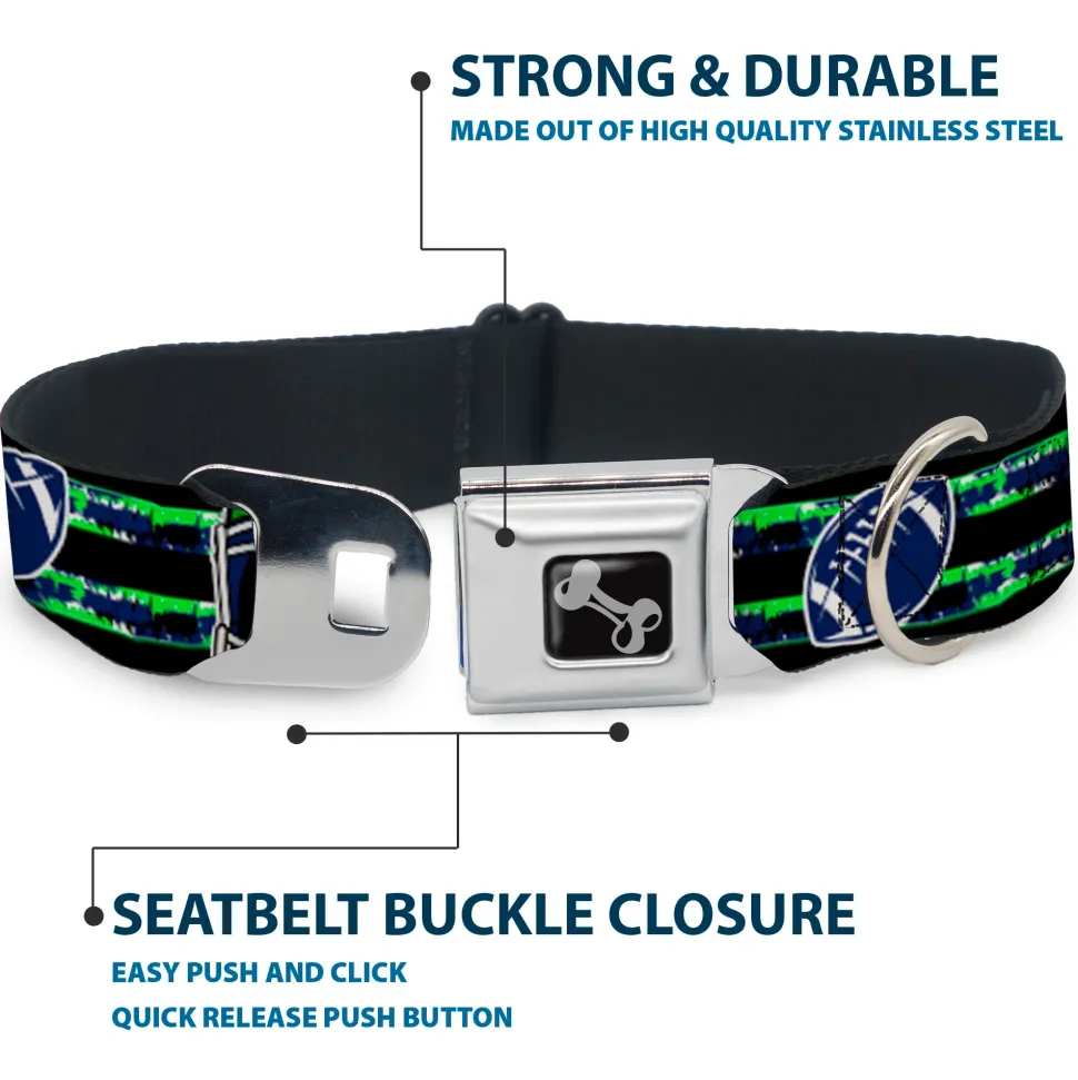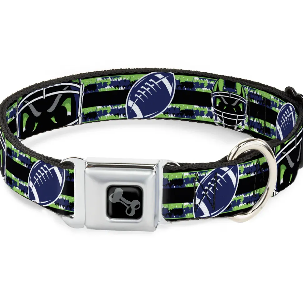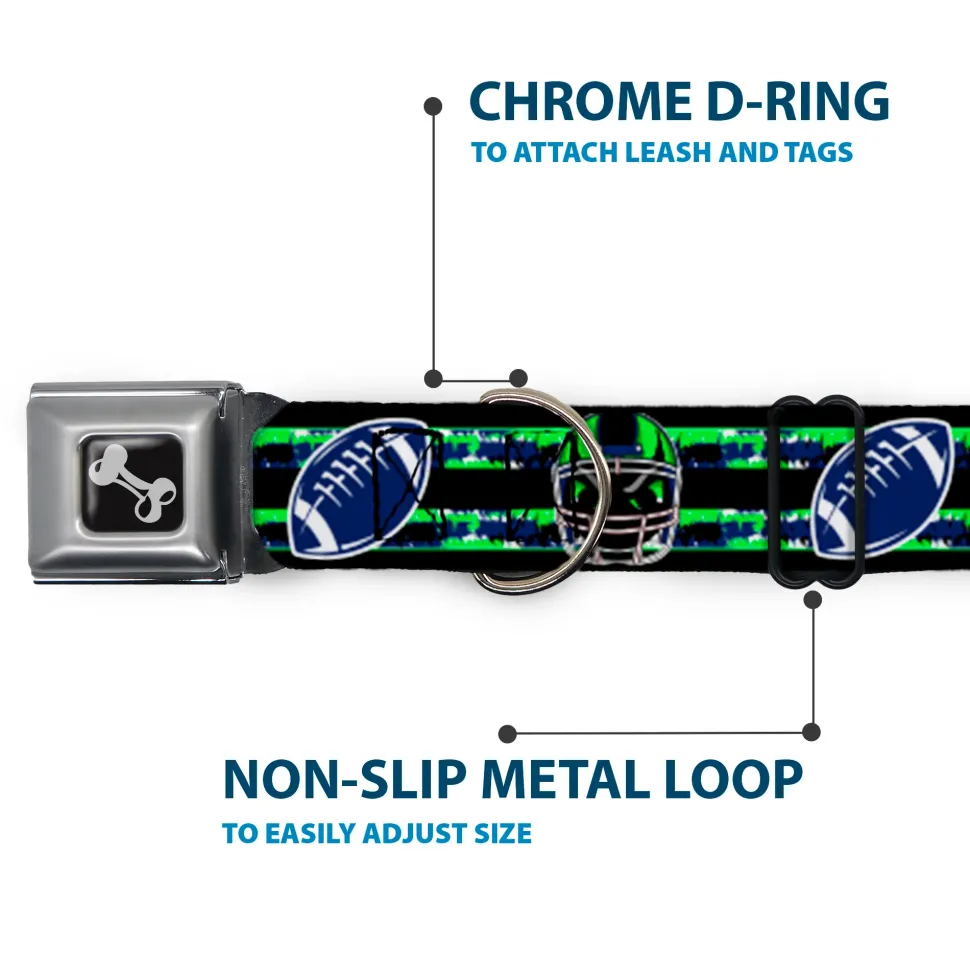Dog Bone Black/Silver Seatbelt Buckle Collar – Football/Helmet Stripe Black/Neon Green/Blue