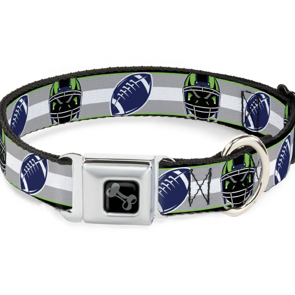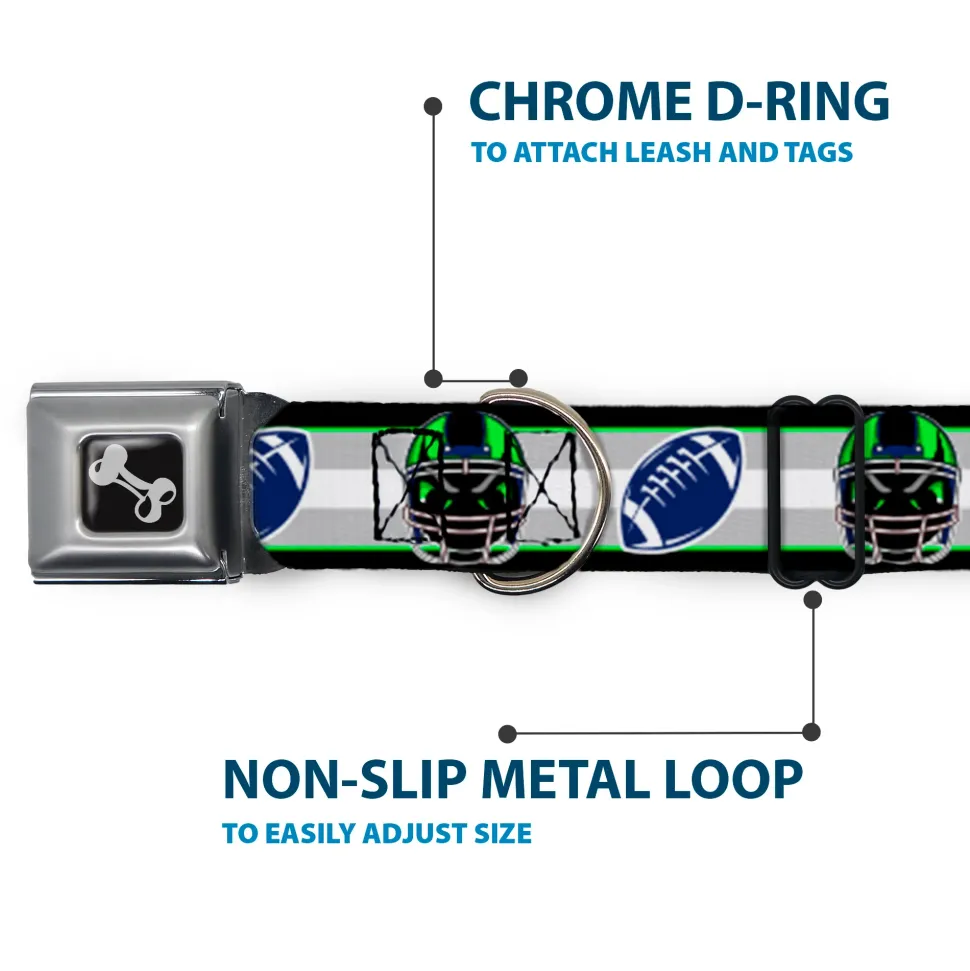 Dog Bone Black/Silver Seatbelt Buckle Collar – Football/Helmet Stripe2 Black/Neon Green/Silver/White/Blue
